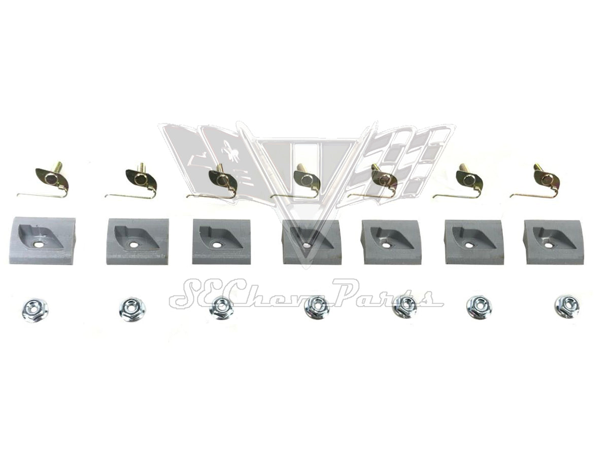This 1960 Chevy Hardtop/Sedan Lower Rear Backglass Molding Clip Set is a replacement of the original set. The kit requires a 60 second modification to the metal clips in order to fit to the molding.