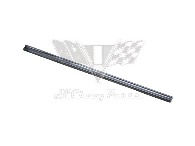 This 1960 Chevrolet 2-Door Biscayne left/ driver's side door wing short molding is in good used condition. The trim piece fits on the door just in behind 9 inch "bird" or spear head molding (L-13-005).   These are rare and we have a limited supply. The molding is beveled on one end which determines the side (see additional photo for example).
