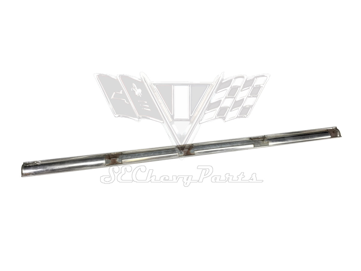 This 1960 Chevy Impala 4-Door Hardtop/Sedan Upper Rear Door Fin Molding is a original GM part that has been professionally restored to show quaility. Some moldings may be missing the clips but there will be enough to secure the molding to the door. Right and left are interchangeable.