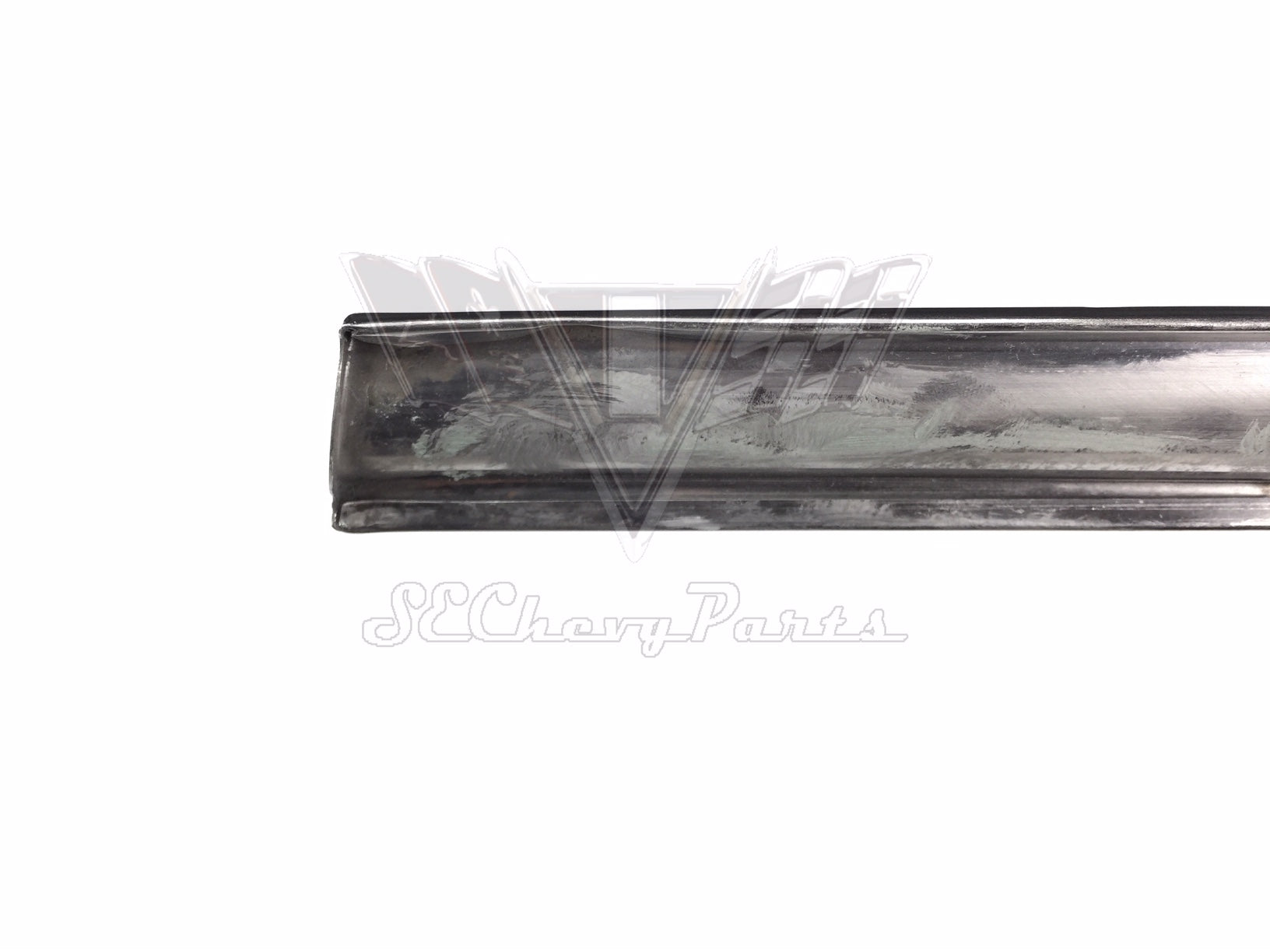 This 1960 Chevy Impala 4-Door Upper Door Molding for the RIGHT/PASSENGER'S SIDE is an original GM part that has been professionally polished to show quality. Some of the pins may be missing but the molding should still be able to securely attach to the door.