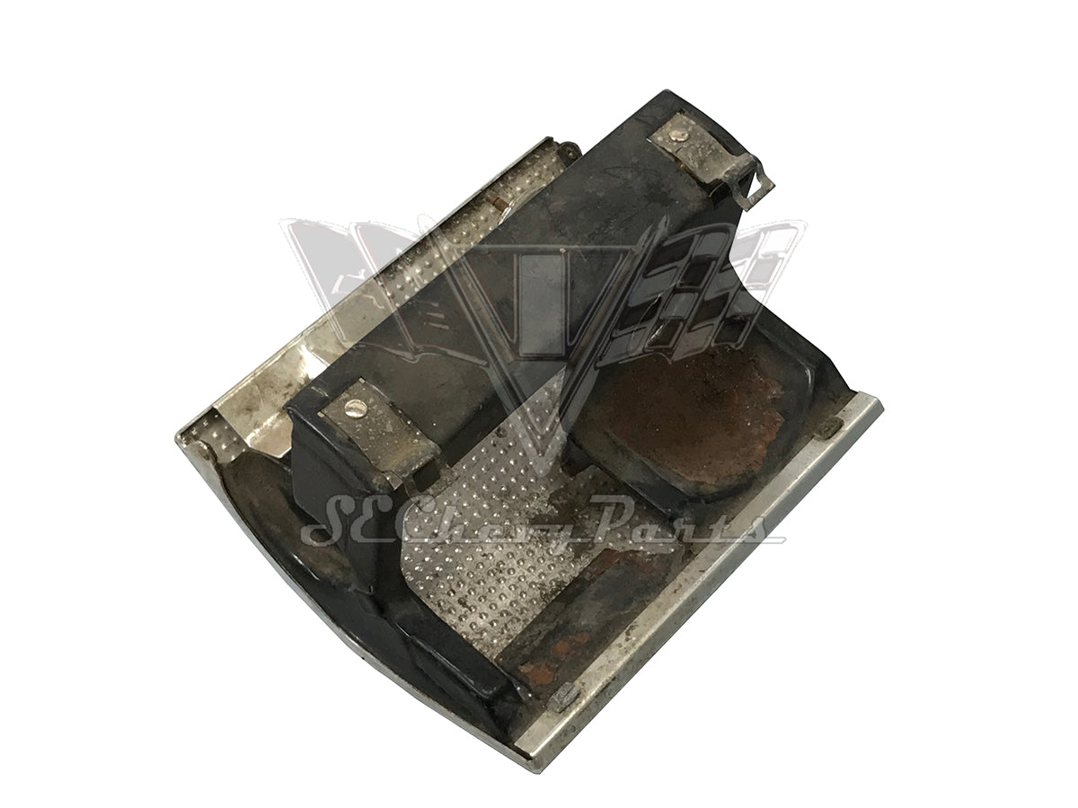 This 1960 Chevy Impala Dash Ashtray w/Aluminum Fascia Plate Trim is an original used GM. The aluminum face has some scrapes and scuff marks but overall in good condition. The inside frame will still need to be restored.