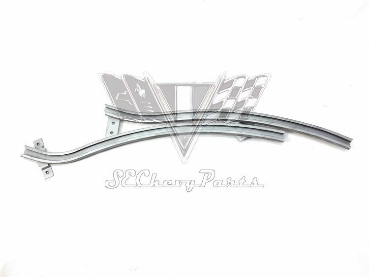 This original 1961-1962 Chevy 2-Door Hardtop RIGHT/PASSENGER'S SIDE Quarter Window Front Channel is for a Bubble Top ONLY. Some channels may have the adjustment screws still attached. In the early production of the 1961 Bubble Top, GM produced only the front channel guide which is slightly shorter than the later production (see photos). But this produced problems when raising the quarter window and so later in 1961 they produced a second rear channel to alleviate the problem.