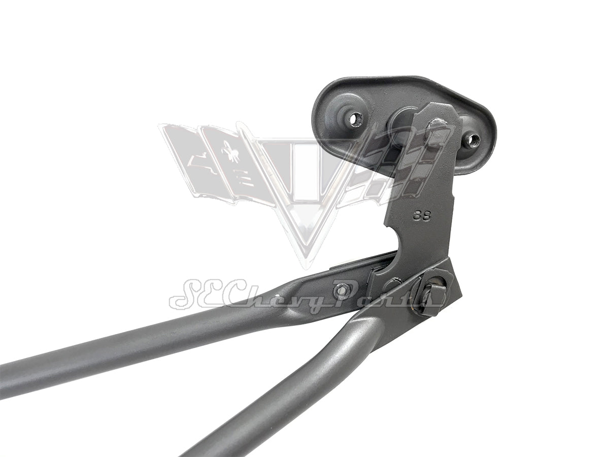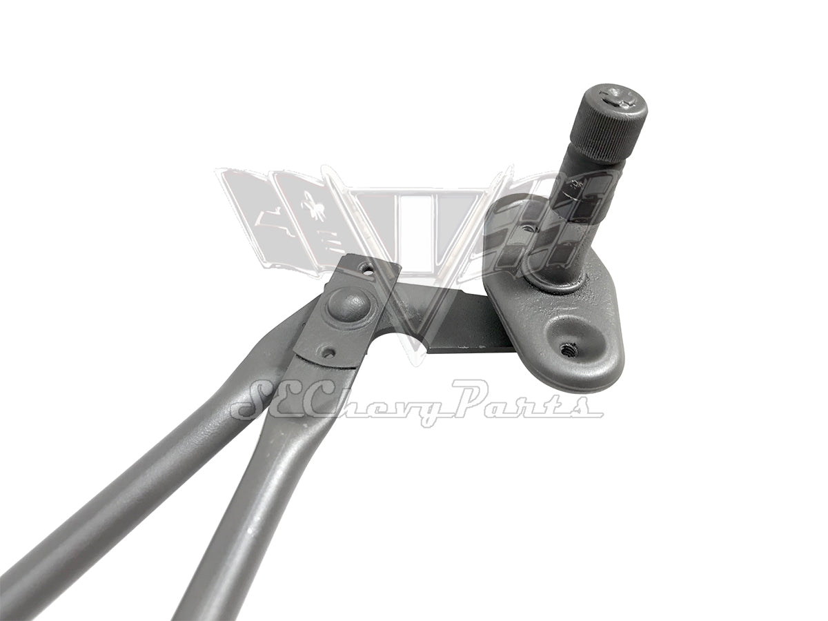 This pair of 1961-1962 Chevy Impala 1 & 2-Speed Wiper Transmission Arms is an original used GM part that has been media blasted and primed. We have also replaced any of the swivel bushings that were broken so that it will function smoothly. NOTE: GM made different designs in early 1961 so some of the transmissions are slightly different in the arm lengths. This set is the 2nd or later design and has 27" and 14 3/4" for the RIGHT and LEFT arm length respectively. Please make sure you are selecting the correct length.