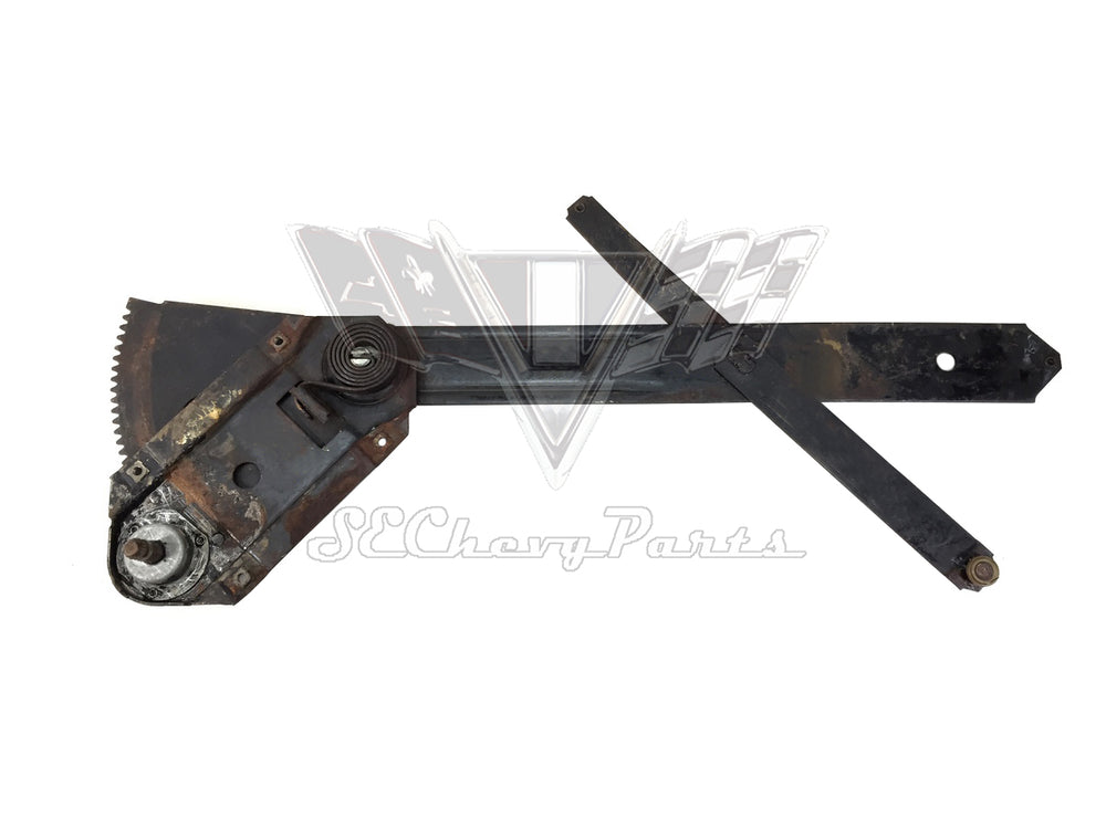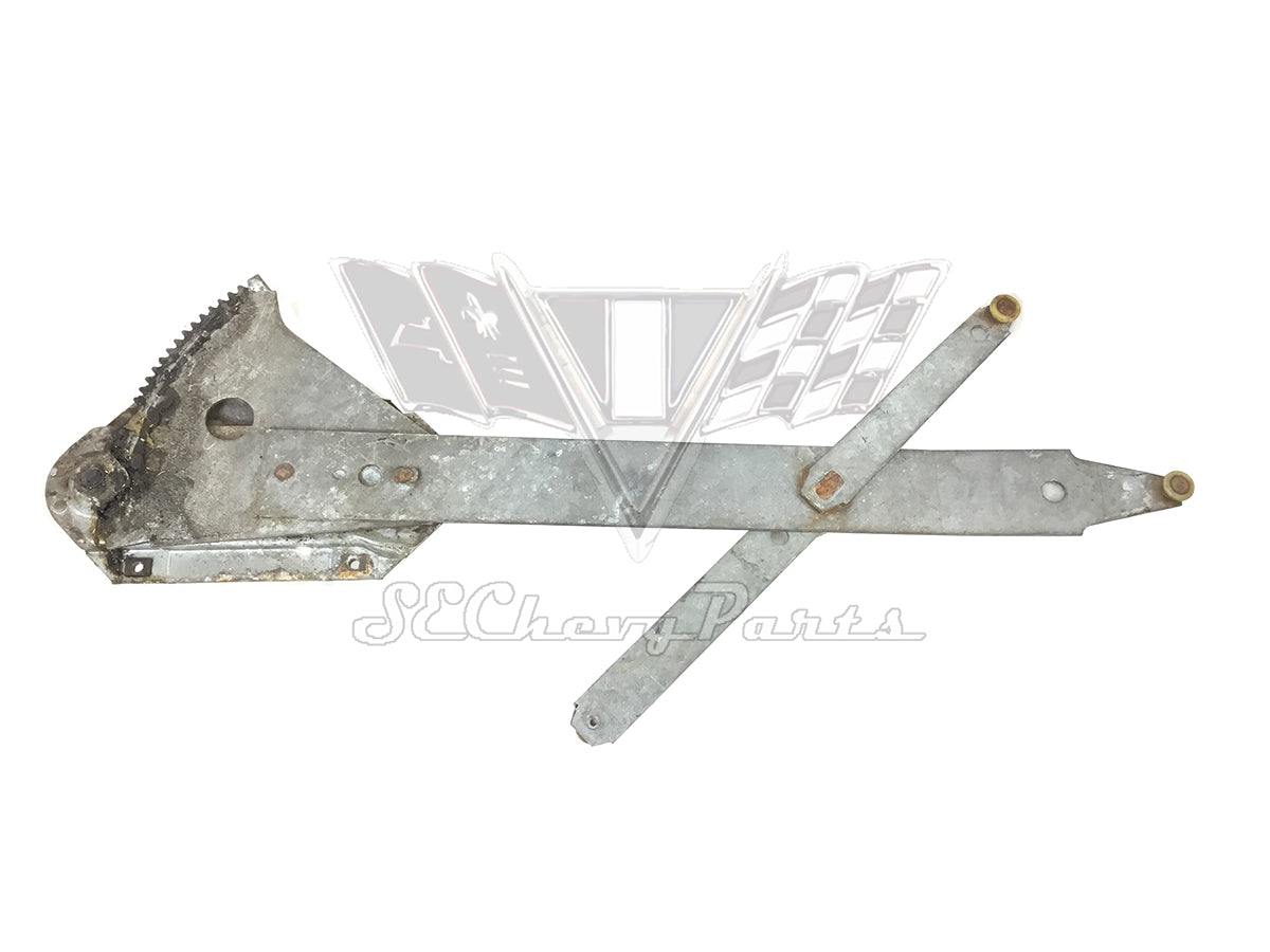 This 1961-1962 Chevy Impala 4-Door Sedan Front Window Regulator is an original used GM part. For an additional cost we can restore the regulator. For an additional fee we can rebuild the regulators.
