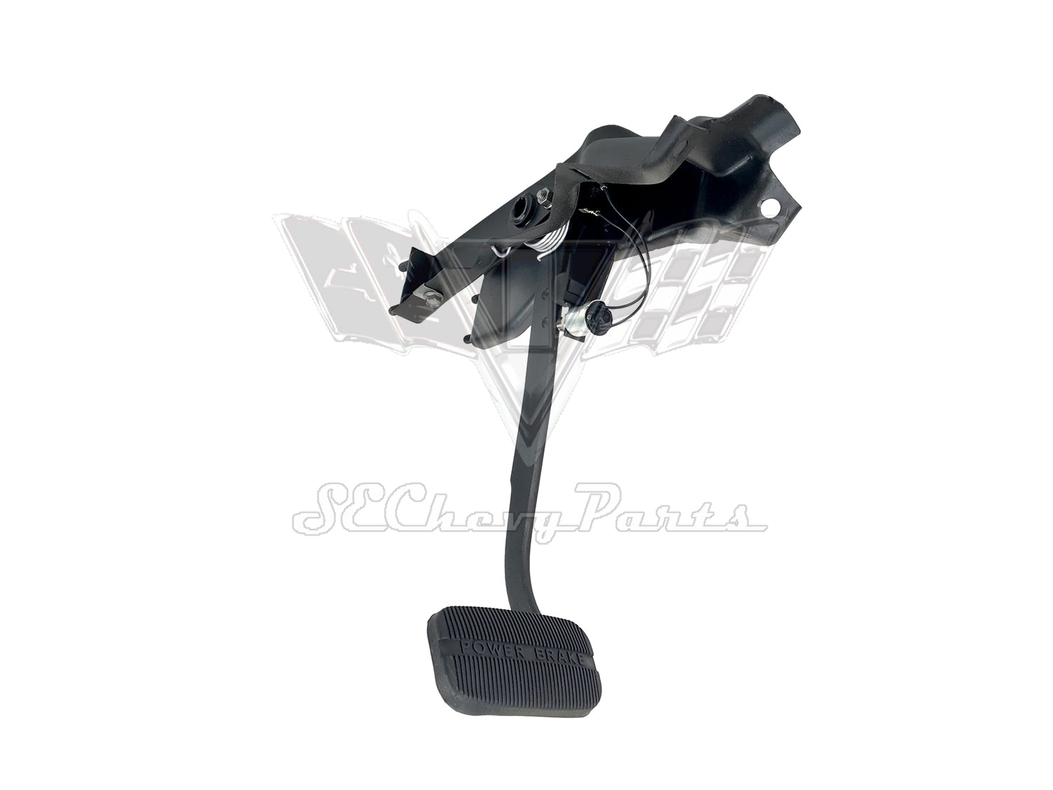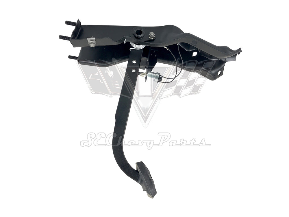 This 1961-1962 Chevy Impala Automatic Swing Pedal Brake Assembly is an original GM Part that has been fully RESTORED. The assembly comes with all new bushings, pads, switch, and rubber. The power brake booster push rod is sold separately.