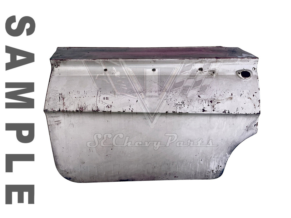 This 1961-1962 Chevy Impala Bel Air 4-Door Hardtop Door Shell Assembly is an original used GM part. This is just the door shell. All other internal components are sold separately. These will be clean doors with minor pitting and little to know cancer. The current photo is just a sample. Please request photos of your exact door.