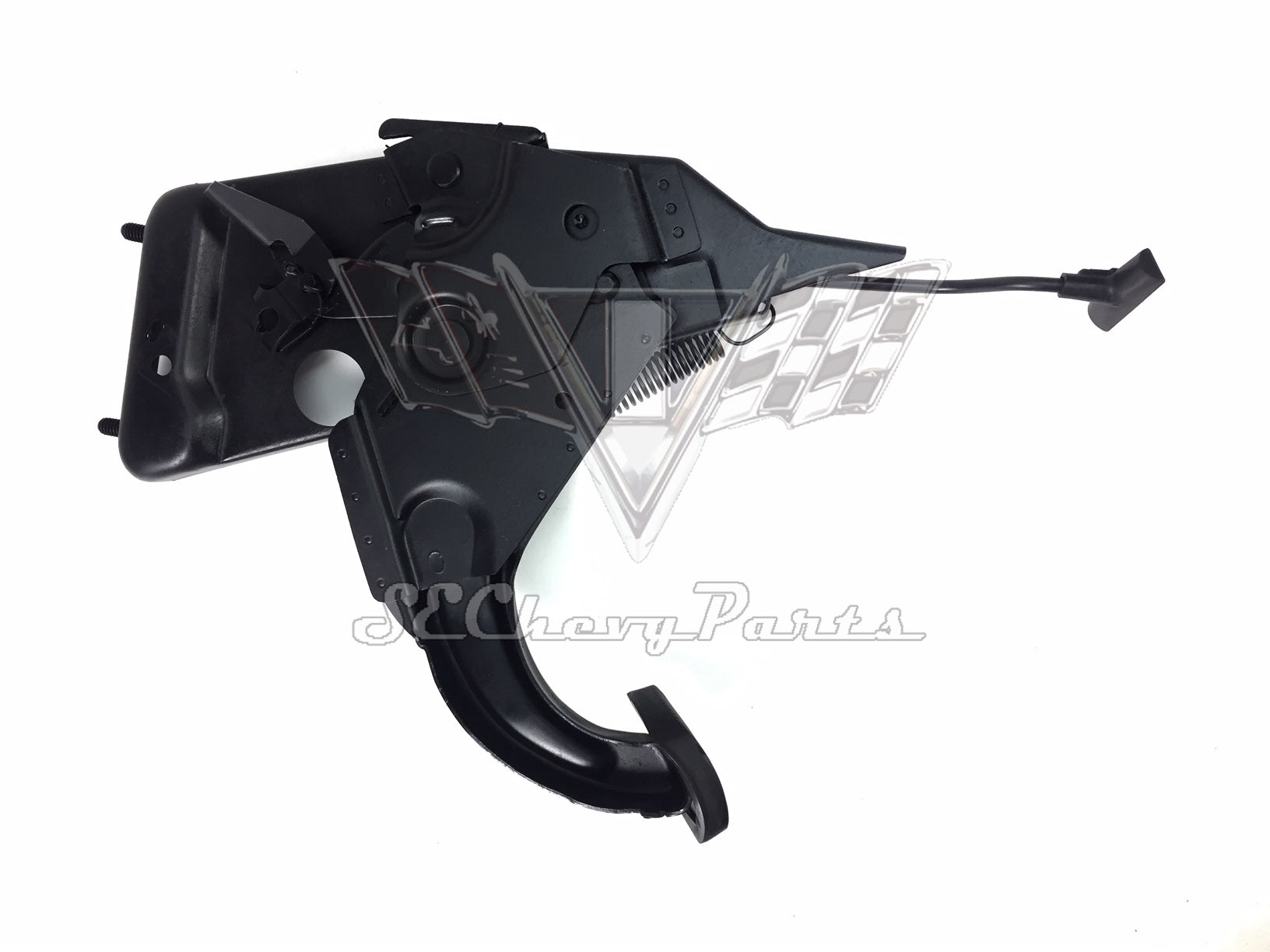 This 1961-1962 Chevy Impala Emergency Parking Brake Foot Pedal Assembly OEM is an original GM part that has been restored.  The assembly has a new foot pedal and plastic release handle.  Notice that there are two different types of food pedals.  One has a small bracket in order to engage the brake light switch while the other does not.  Please indicate this in the options section.