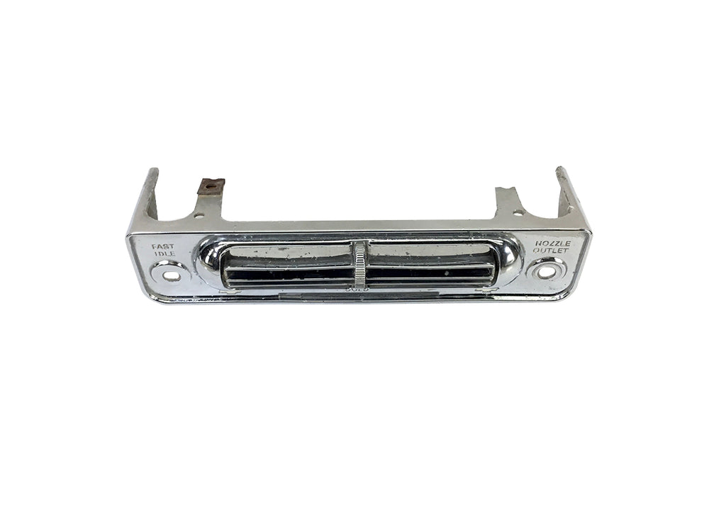 This 1961-1962 Chevy Impala Under Dash AC Vent Center Control Bezel is an original used GM part. The bezel is not perfect and has one tab that is broken (see picture) but overall in good working condition. Includes the diffuser but no knobs.