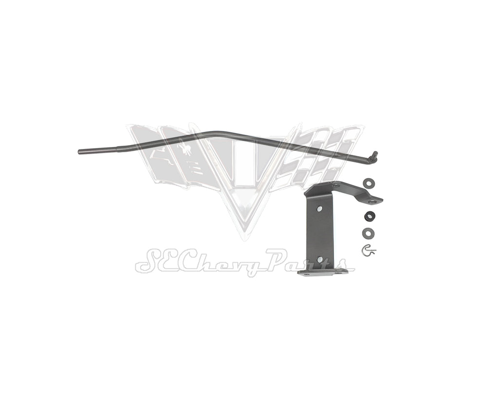 This 1961-1962 Chevy non 327 Automatic Powerglide Transmission Shift Rod Lever Linkage Kit is an original GM part that has been restored. The kit includes the swival lever (#3780023) that mounts to the frame and the upper rod (#3779919) that goes to the steering column plus the mounting bushings, washers, pins, and clips. See L-12-017 for the swival stud that is welded to the frame. This kit fits all 1961-1962 cast iron powerglides EXCEPT the 327 engine (see L12-015 for 327 engine).