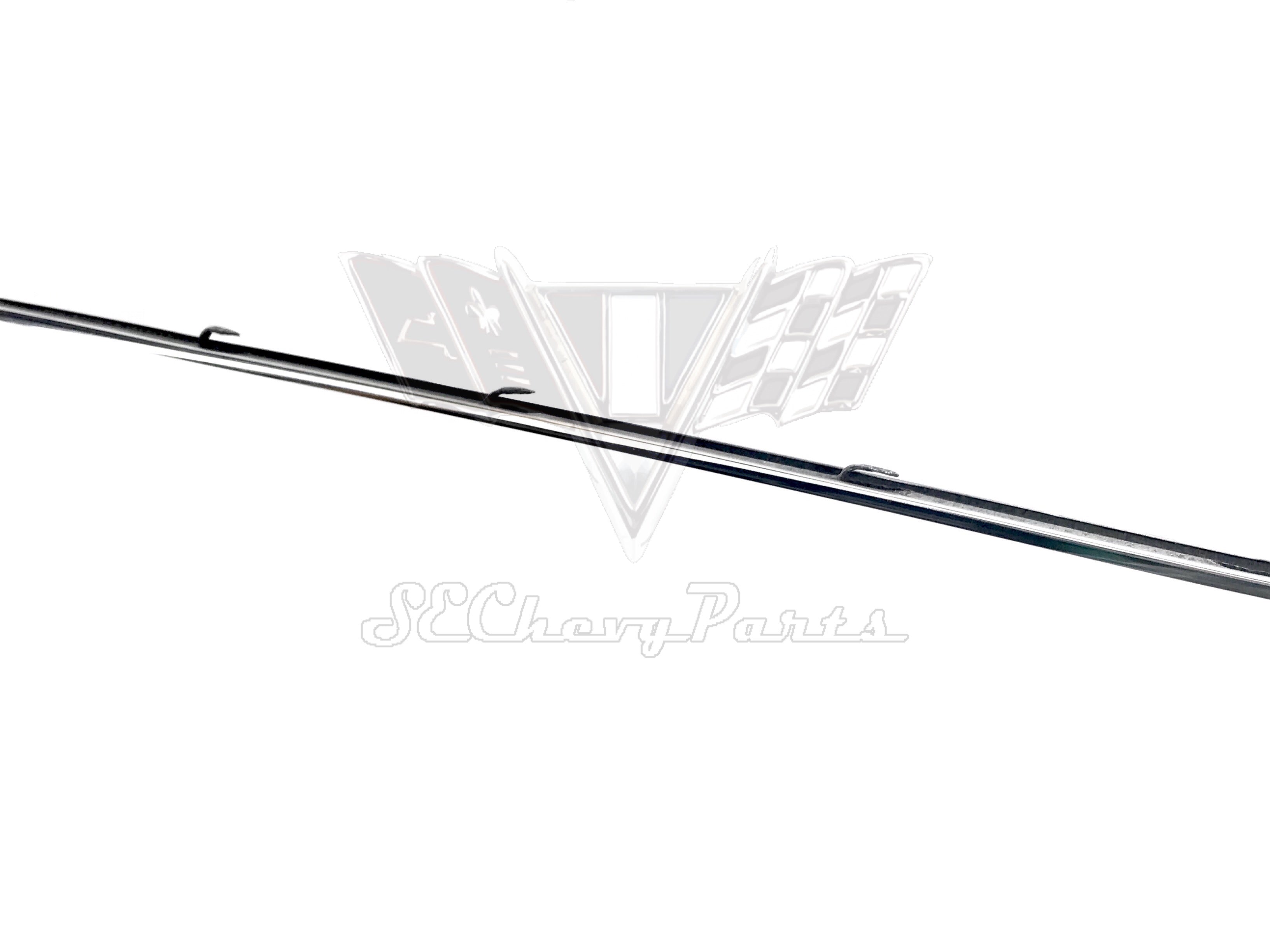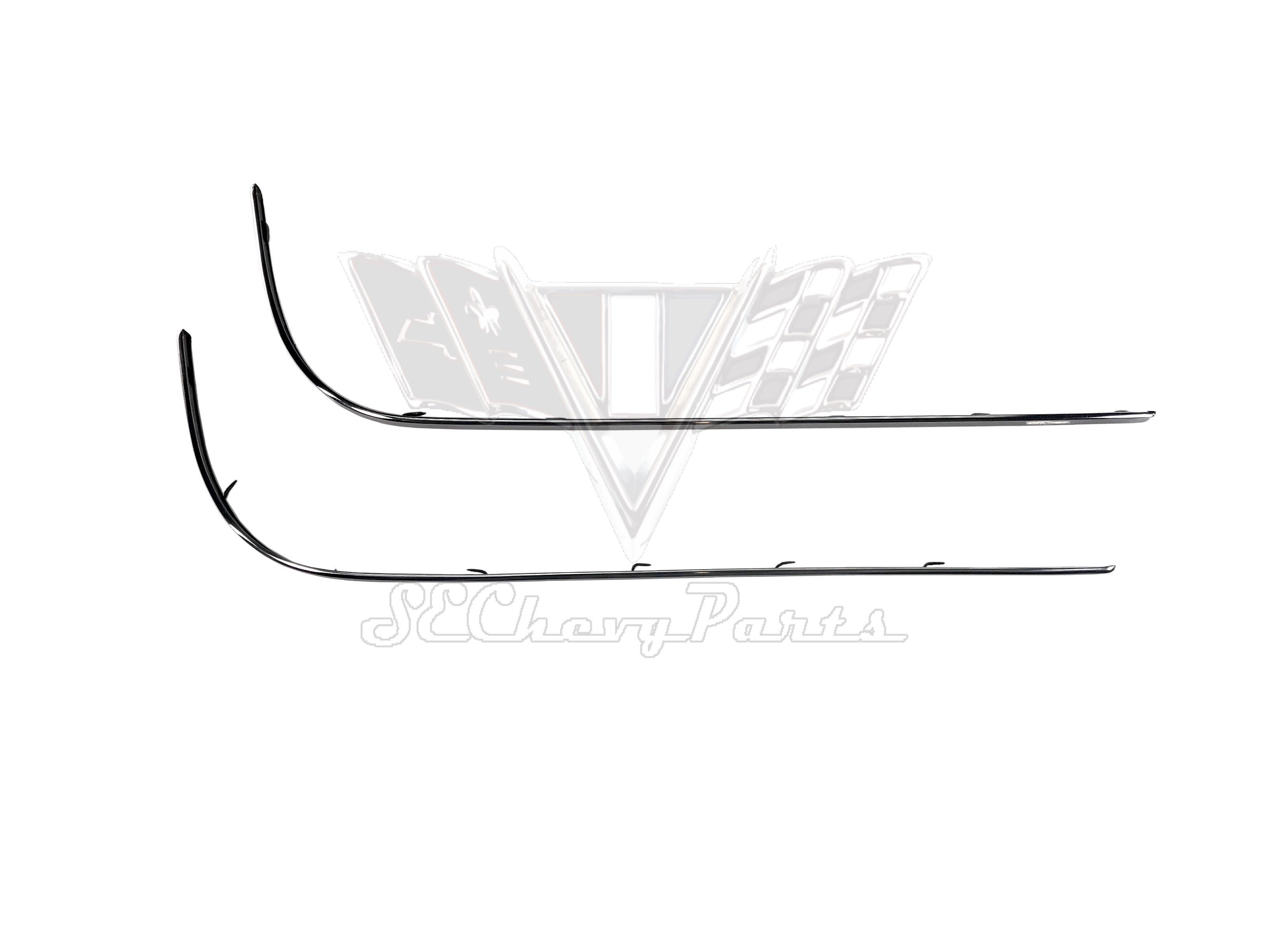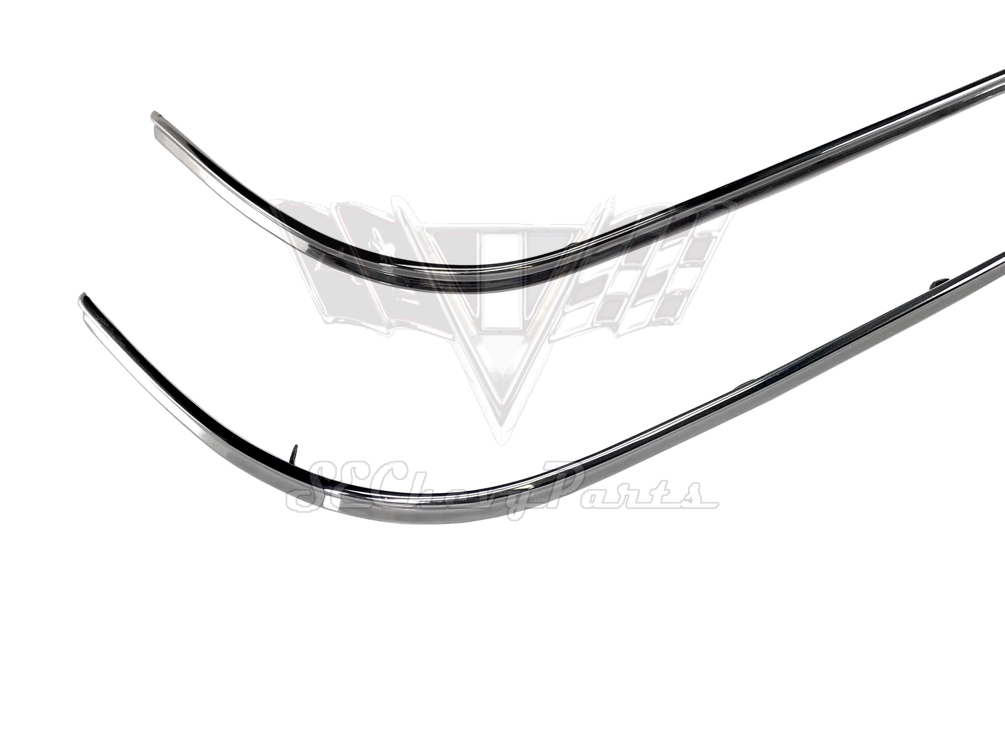 This pair of 1961-1962-1963 Chevy Convertible Rear Quarter Armrest Trim Moldings is an original GM part that has been professionally polished. They come with good pins (on occasion one may be missing).