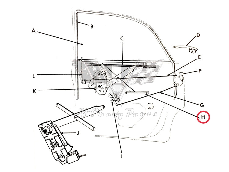 1961-1962-1963-1964 Chevy 4-Door Sedan REAR Door Horizontal Lower Glass Window Channel is an original GM part that has been restored. The channel attaches to the lower portion of the door and connects with the window regulator. The left and right channels are interchangeable.