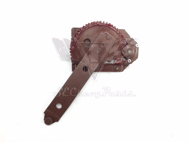This 1959-1964 Chevy Impala Convertible OEM RIGHT/PASSENGER'S SIDE Quarter Window Regulator is an original GM part that has been fully restored. We replace any gears or nylon rollers that are broken or worn down. Often the springs are broken or the main rivet is loose causing the regulator to fail to raise the window all the way up. In this case, we install new springs or rivets so as to ensure that the regulator will work properly. When we get done with them they look and function like new.