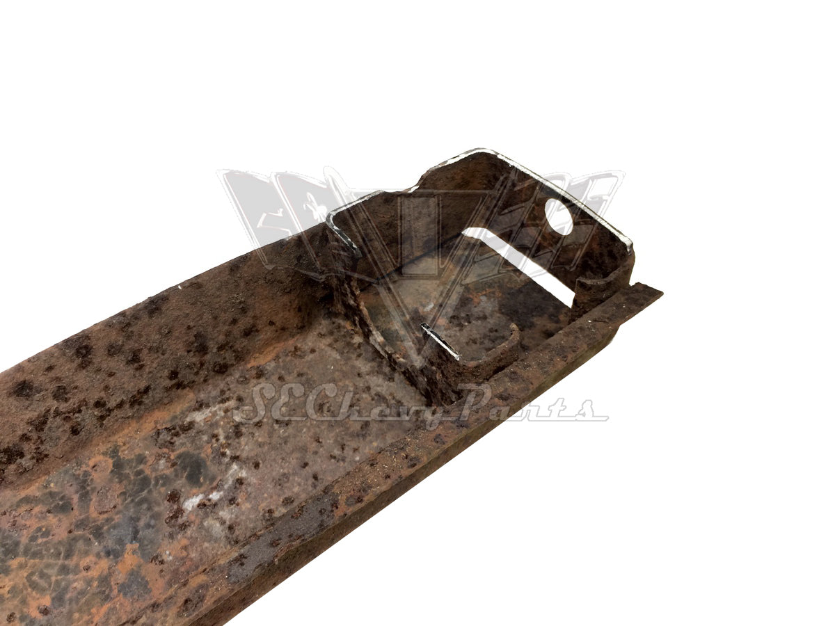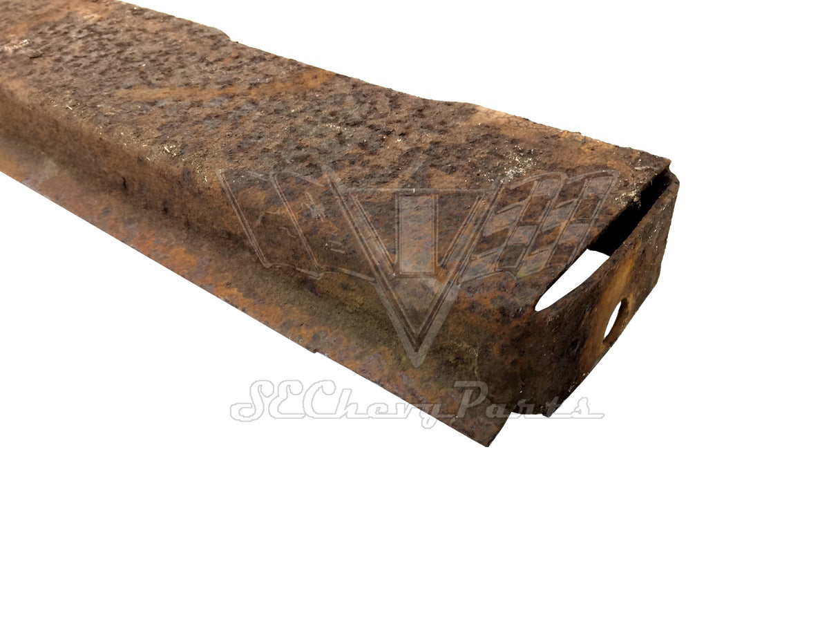 This 1961-1964 Chevy Impala Frame Chassis Rear Section is an original used GM part. The metal has some pitting but is straight and cut so that it can easily be welded back on.