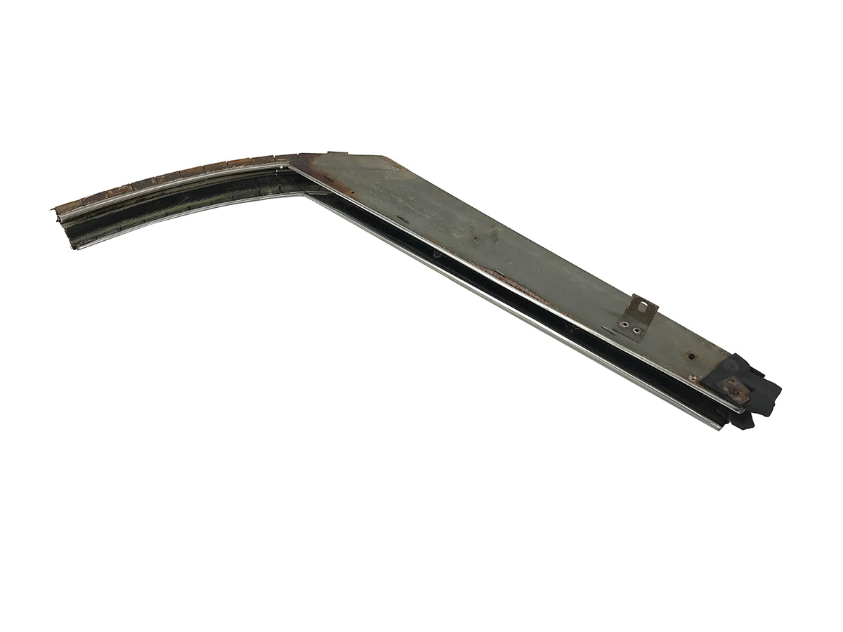 This 1961-1964 Chevy Impala Wagon Tailgate Window Channel Guide is an original used GM part. The channel attaches to the end pillar of a wagon and guides the tailgate glass along the upper vertical section. NOTE that the felt channel will need to be replaced and that the upper section will need to be replaced with a reproduction felt channel with a beaded end.