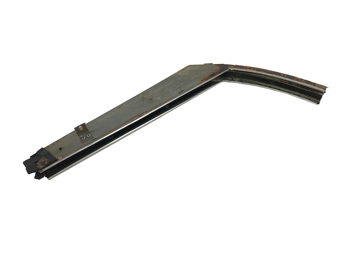 This 1961-1964 Chevy Impala Wagon Tailgate Window Channel Guide is an original used GM part. The channel attaches to the end pillar of a wagon and guides the tailgate glass along the upper vertical section. NOTE that the felt channel will need to be replaced and that the upper section will need to be replaced with a reproduction felt channel with a beaded end.