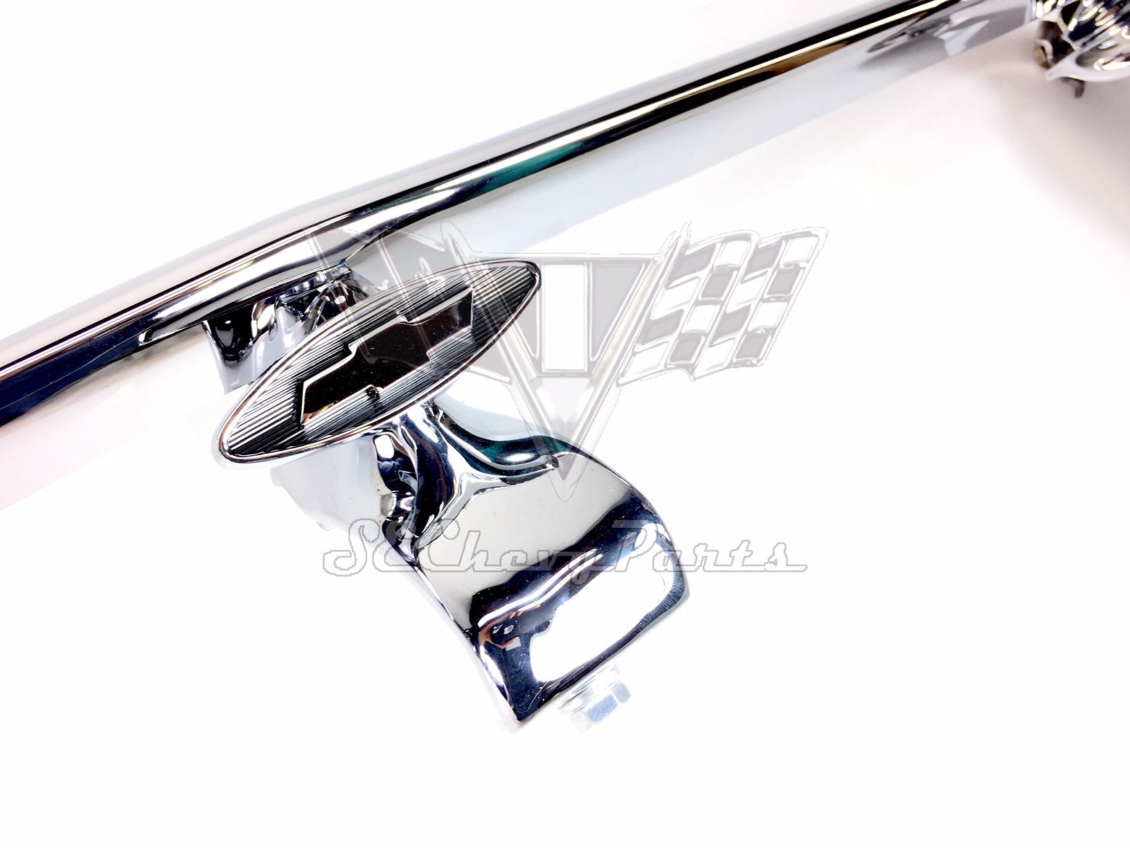 This 1961 Chevy Impala Front Accessory Grille Guard with Rubber Bullets is an original used GM part.  The assembly comes with aftermarket rubber bumpers, chrome pull handle, and the mounting hardware kit.  For an additional cost we can also re-chrome the accessory bumper pieces.  If you choose to have the bumper guard replated please allow 6-8 months to complete the order.