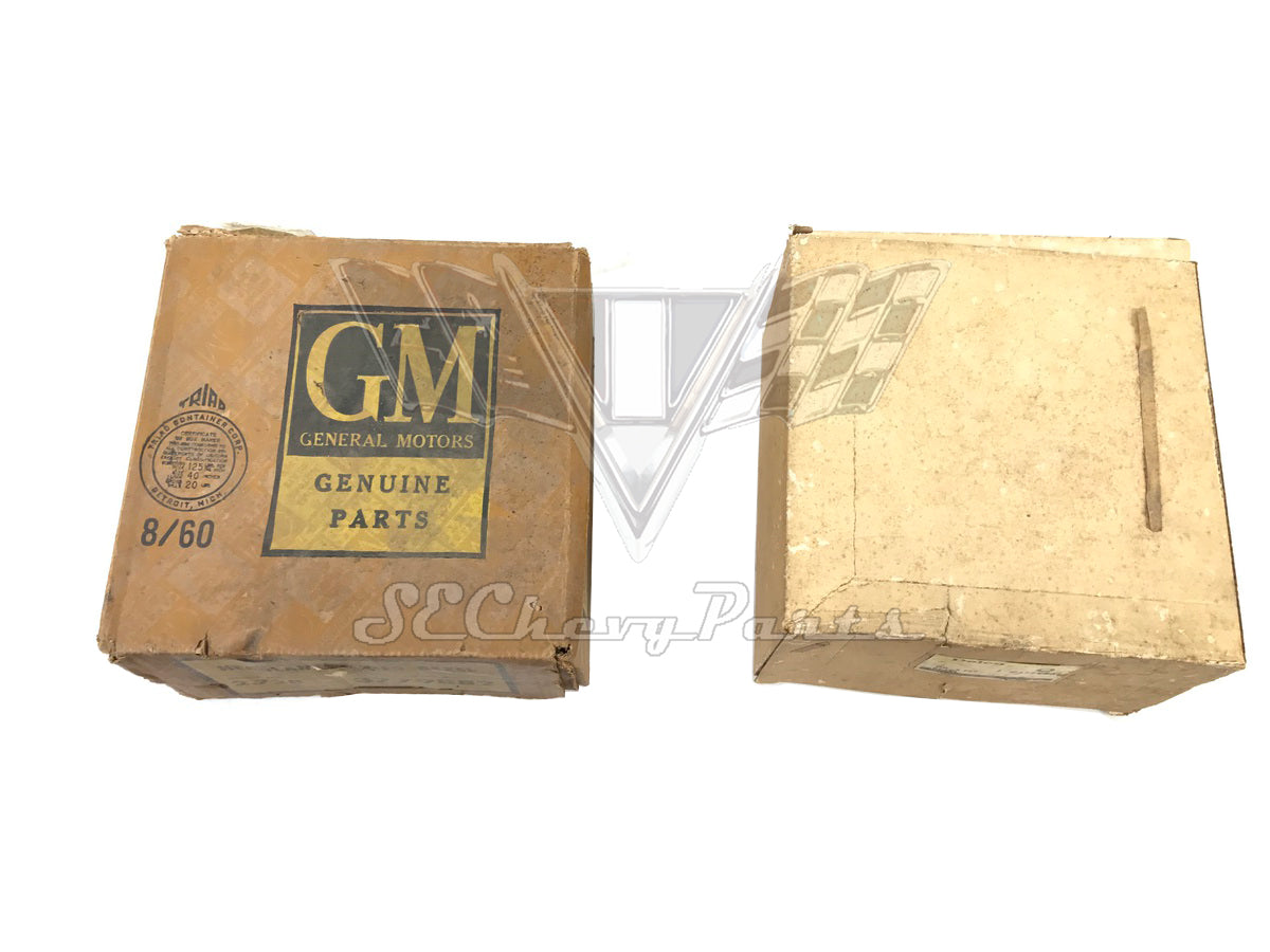 This pair of 1961 Chevy Impala Headlight Inner Bezels are true NOS. They are still in the original GM and Delco Box. They may have some shelfwear but are in great condition.