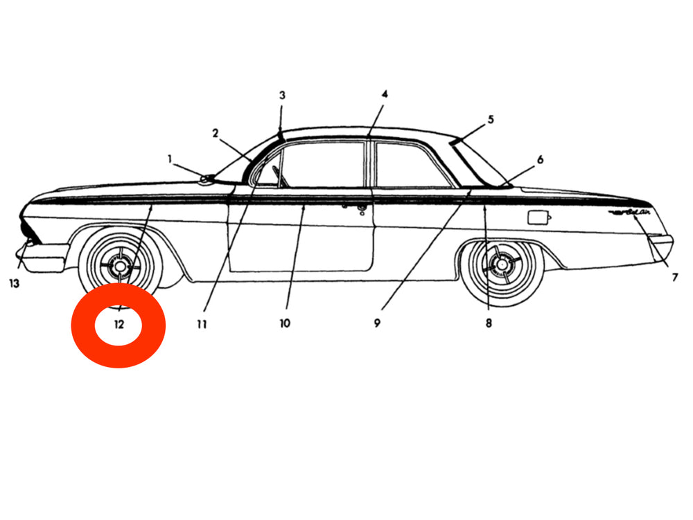 1962 Chevy Bel Air Front Fender Molding LEFT NOS 3815759