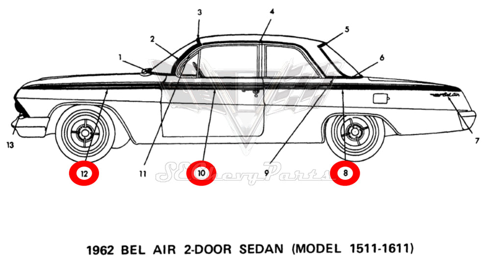 1962 Chevy Belair 2 Door Hardtop/2 Door Sedan Side Molding Complete Set SHOW