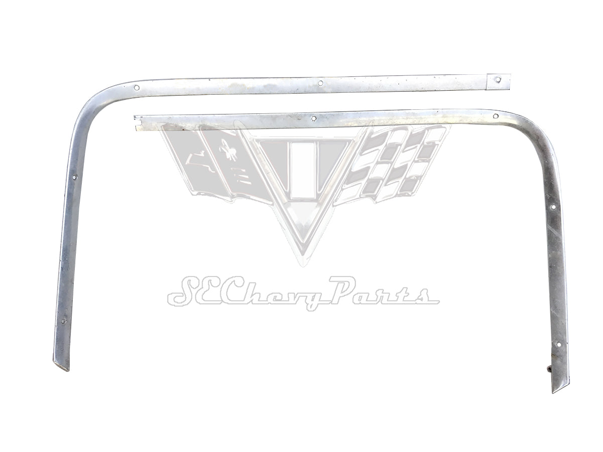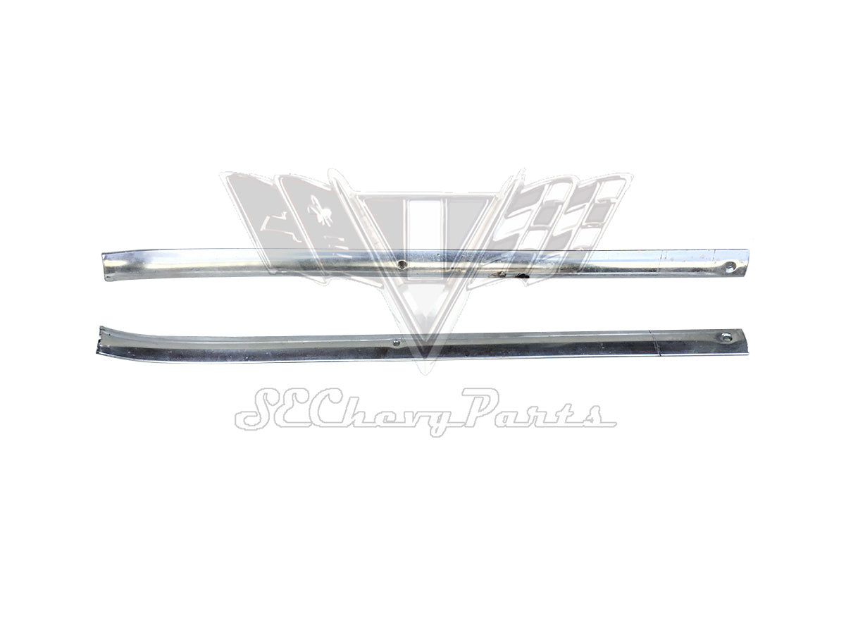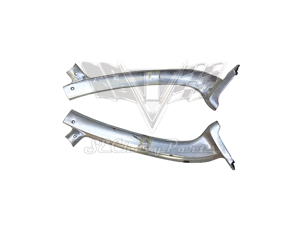 This 1962 Chevy Impala 2-Door Hardtop Interior Headliner Molding Trim Set is an original used GM set. This is for the non-Bubbletop style of 1962. It comes complete with all the correct interior headliner trim. This is a used set and is intended to be restored by anodization or chrome plating. There will be no tears or extra holes in the aluminum but there will be some minor pitting.