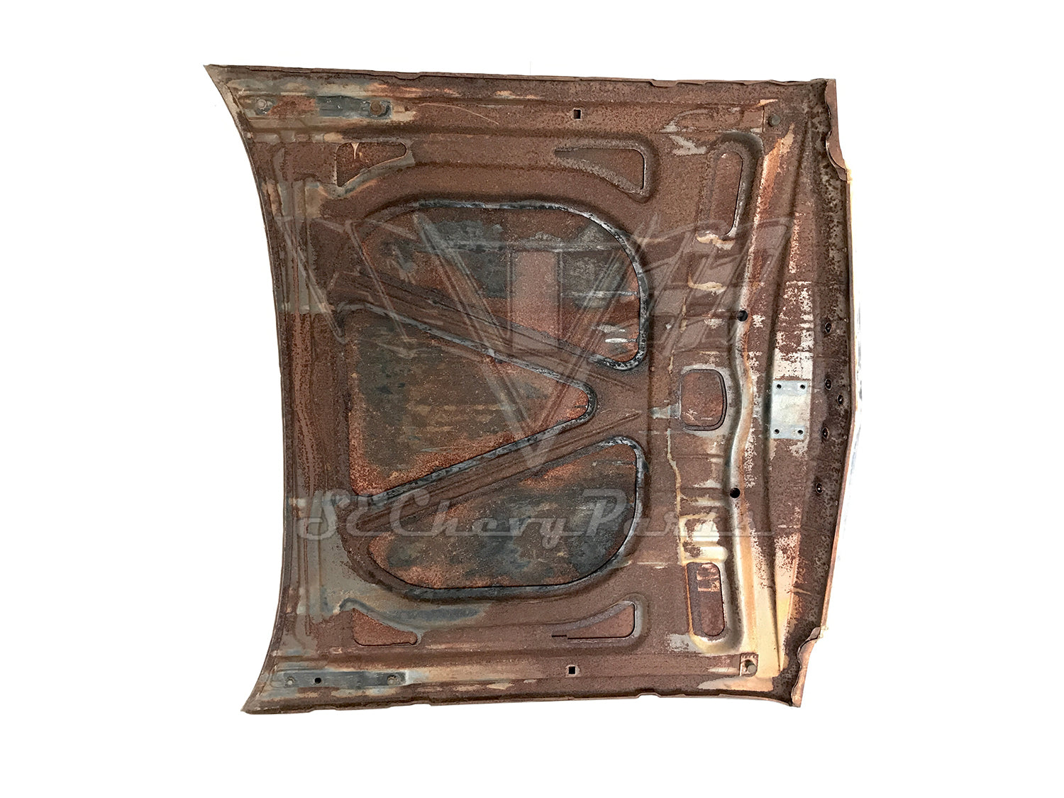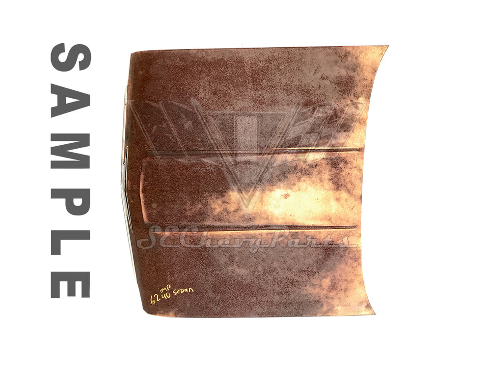 This 1962 Chevy Impala Hood is an original GM used part. The hood photographed is just a sample. Please contact the shop to get specific photos of the hood you will purchase. Fits all models.