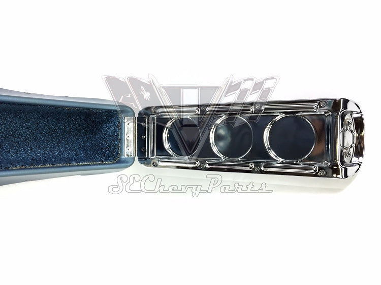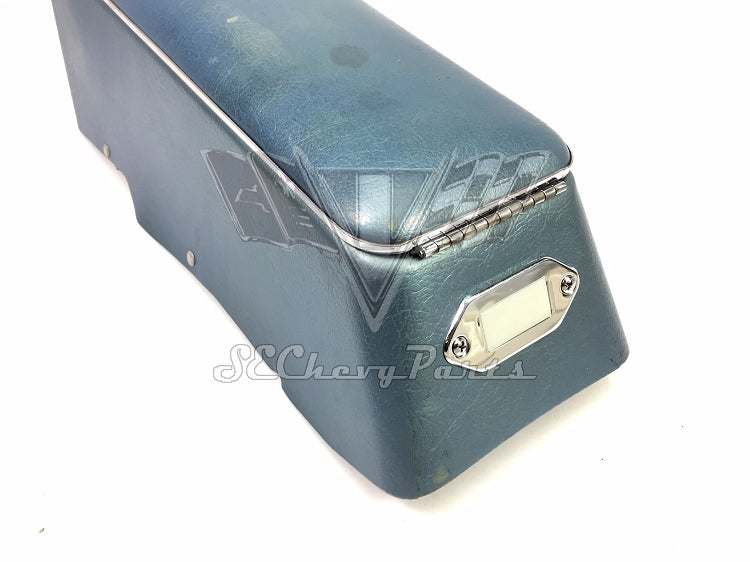 This 1962 Chevy Impala Super Sport Center Console is an original GM part that is in great condition.  The chrome, carpet, and vinyl is in excellent condition.  The only missing piece is the inner latch (see photo).