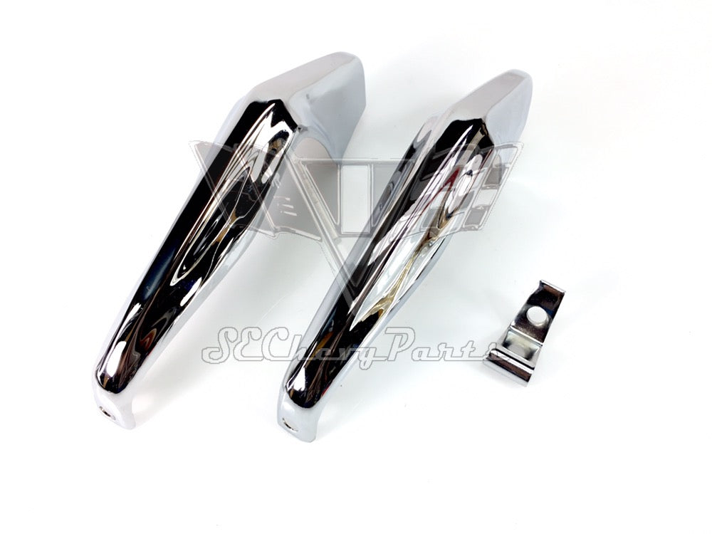 This pair 1962 Chevy non-Wagon Rear Accessory Bumper Guards is a reproduction of the original. The chrome is in good condition but not all the mounting hardware is present.