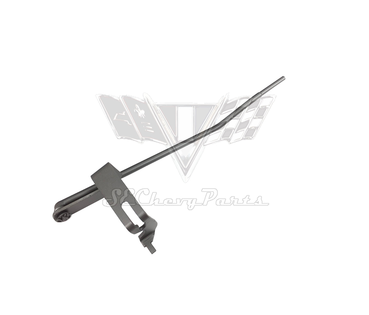 This 1963-1964 Chevy Automatic Powerglide Transmission Shift Rod Lever Linkage Kit is an original GM part that has been restored. The kit includes the swival lever (#3852835) that mounts to the frame and the upper rod (#3842900) that goes to the steering column plus the mounting bushings, washers, pins, and clips. See L-12-020 for the swival stud that is welded to the frame. This kit fits all 1963-1964 powerglides EXCEPT the Super Sport setup.