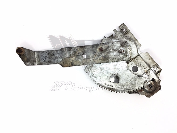 This 1963-1964 Chevy Impala 2 Door Hardtop LEFT/DRIVER'S SIDE Quarter Window Regulator is an original used GM part.. The regulator has been inspected to ensure functionality.  The teeth and splines are in good condition.  We can also do a complete restoration for an additional fee.