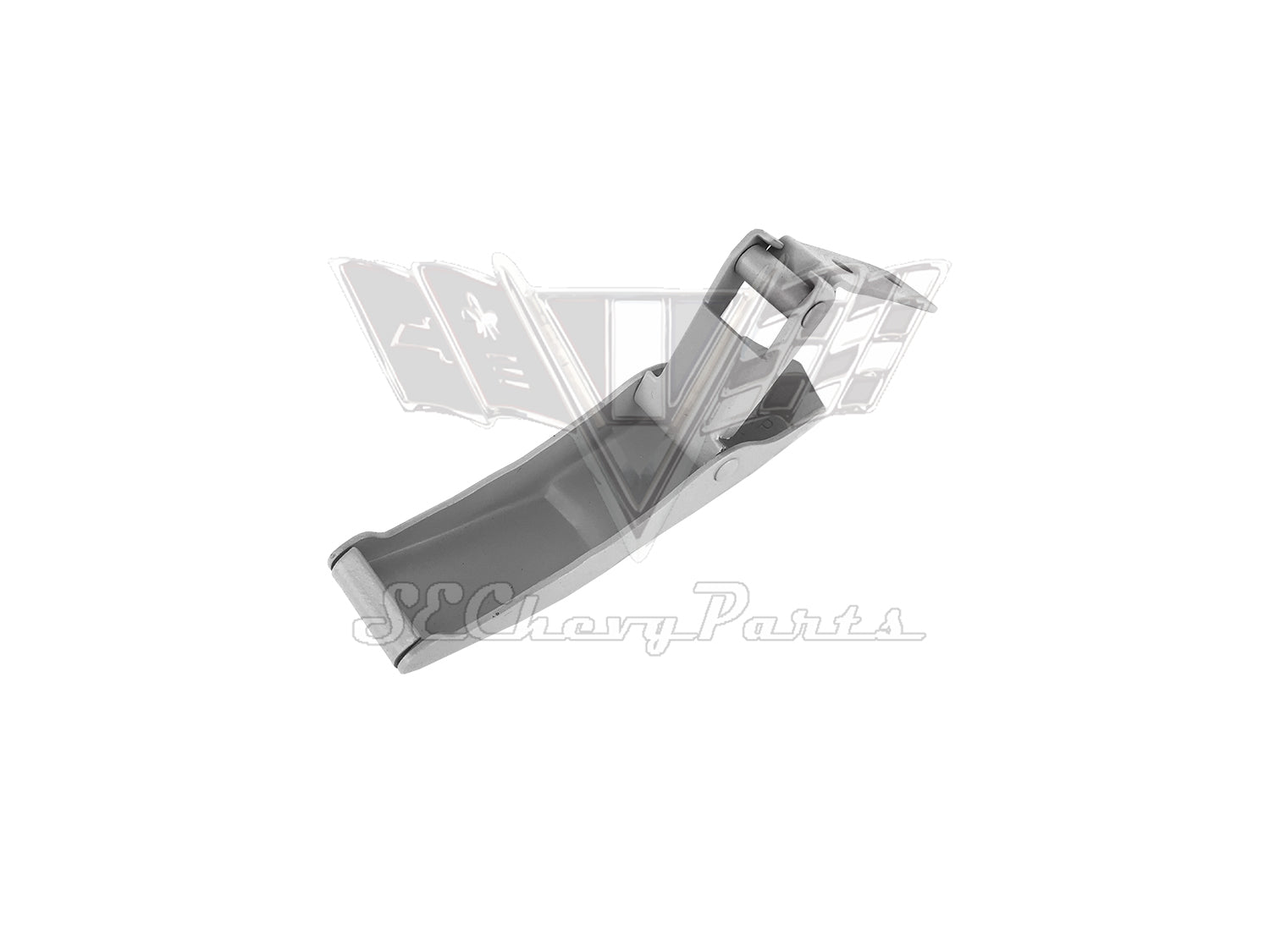 This 1963-1964 Chevy Impala 6-Passenger Wagon RIGHT/PASSENGER'S SIDE REAR Inner Rear Spare Tire Side Panel Latch is an original GM part that has been media blasted and primed. The latch secures the panel to the body.