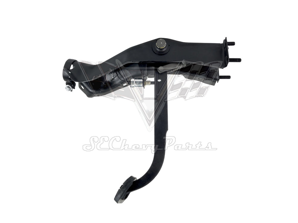 This 1963-1964 Chevy Impala Automatic Swing Pedal Power Brake Assembly is an original GM Part that has been fully RESTORED. The assembly comes with all new bushings, pads, switch, and rubber. The power brake setup is very different than the non-power brake. This assembly has a spring in the foot pedal and the brake plunger rod has no eyelet on the end to connect to the power brake booster but is a straight shaft for the master cylinder.