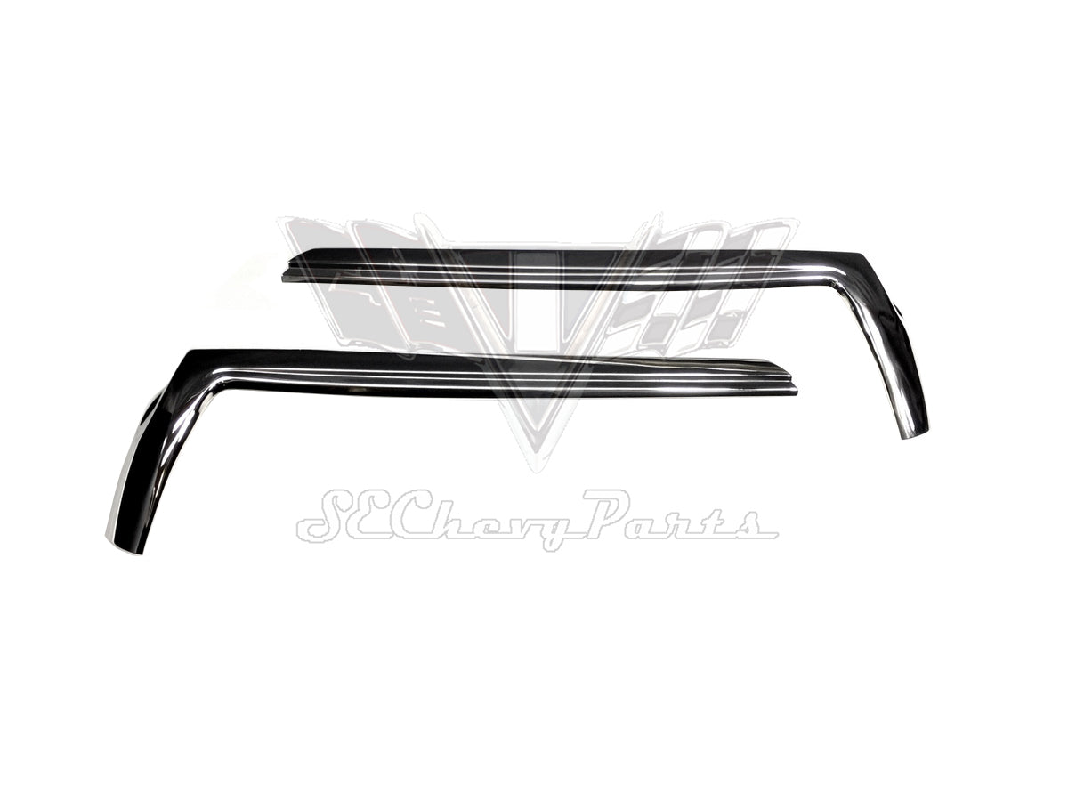 This 1963-1964 Chevy Impala Convertible Windshield Header Pillar Molding Trim Set are original GM parts that has been professionally restored to show quality. The set DOES NOT include the mounting clips. Contact us to inquire about sending us your cores for credit.