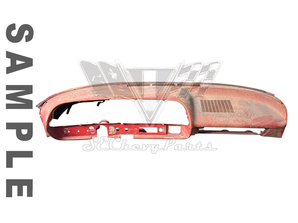 This 1963-1964 Chevy Impala Dash Assembly Frame Housing Non/AC is an original used GM part that has been cut from a car. Overall the metal will be good and usable but there may be some minor pitting. Ask for photos of the exact dash we will send you.