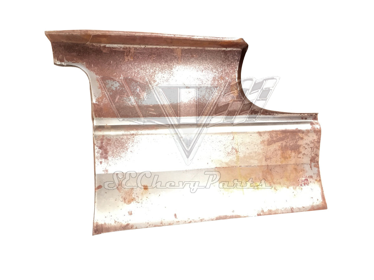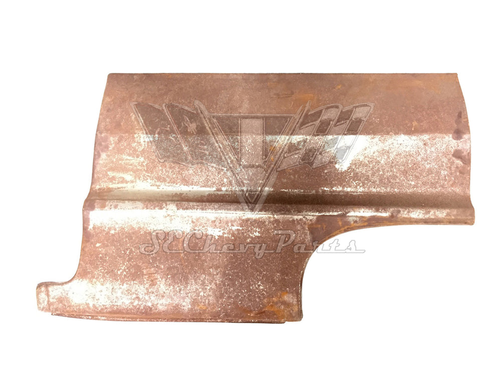 This 1963-1964 Chevy Impala Rear Quarter Front Patch Panel is a reproduction of the original GM part. This is old inventory that has been sitting on the shelf. There may be shelf-wear with minor dings and dents but they have never been installed.