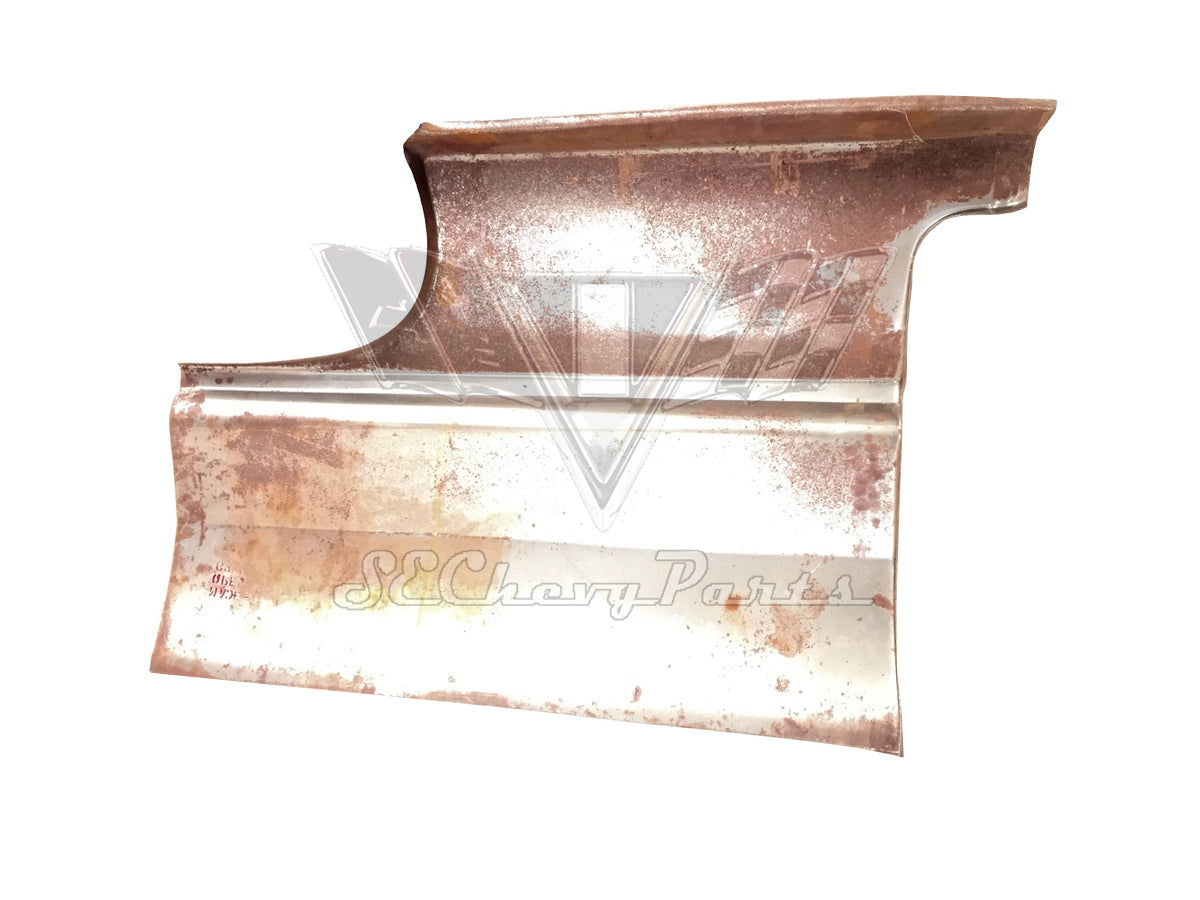 This 1963-1964 Chevy Impala Rear Quarter Front Patch Panel is a reproduction of the original GM part. This is old inventory that has been sitting on the shelf. There may be shelf-wear with minor dings and dents but they have never been installed.