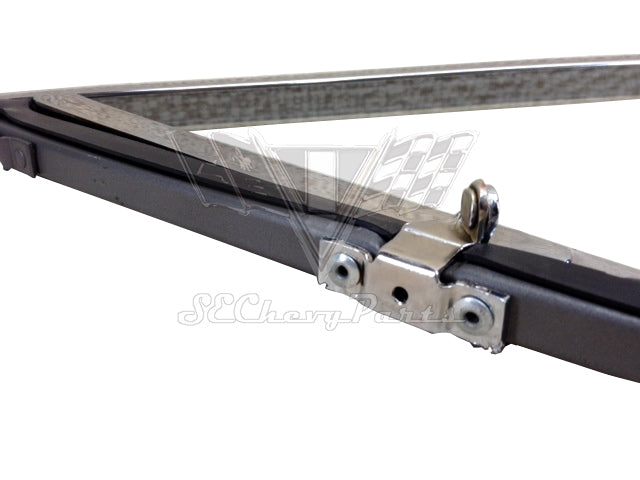 This original 1963-1964 Chevrolet sedan right/ passenger's side vent window assembly has been fully restored. Are your vent assemblies leaking or the glass bubbling along the edges? Leave it to us to get that fixed. With our trained professionals, we strip the old assemblies and rebuild them using all new rubbers, channels, and glass with chrome channel. They look great and are ready for installation.