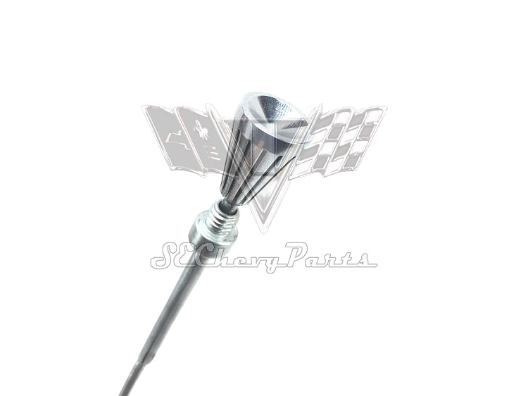 These 1963 Chevrolet Impala Fresh Air Vent Cables are an original used GM part. The cables come with a used knob.  The shorter cable attaches to the dash and controls the driver's side fresh air vent while the longer cable attaches under the dash and controls the passenger's side vent.