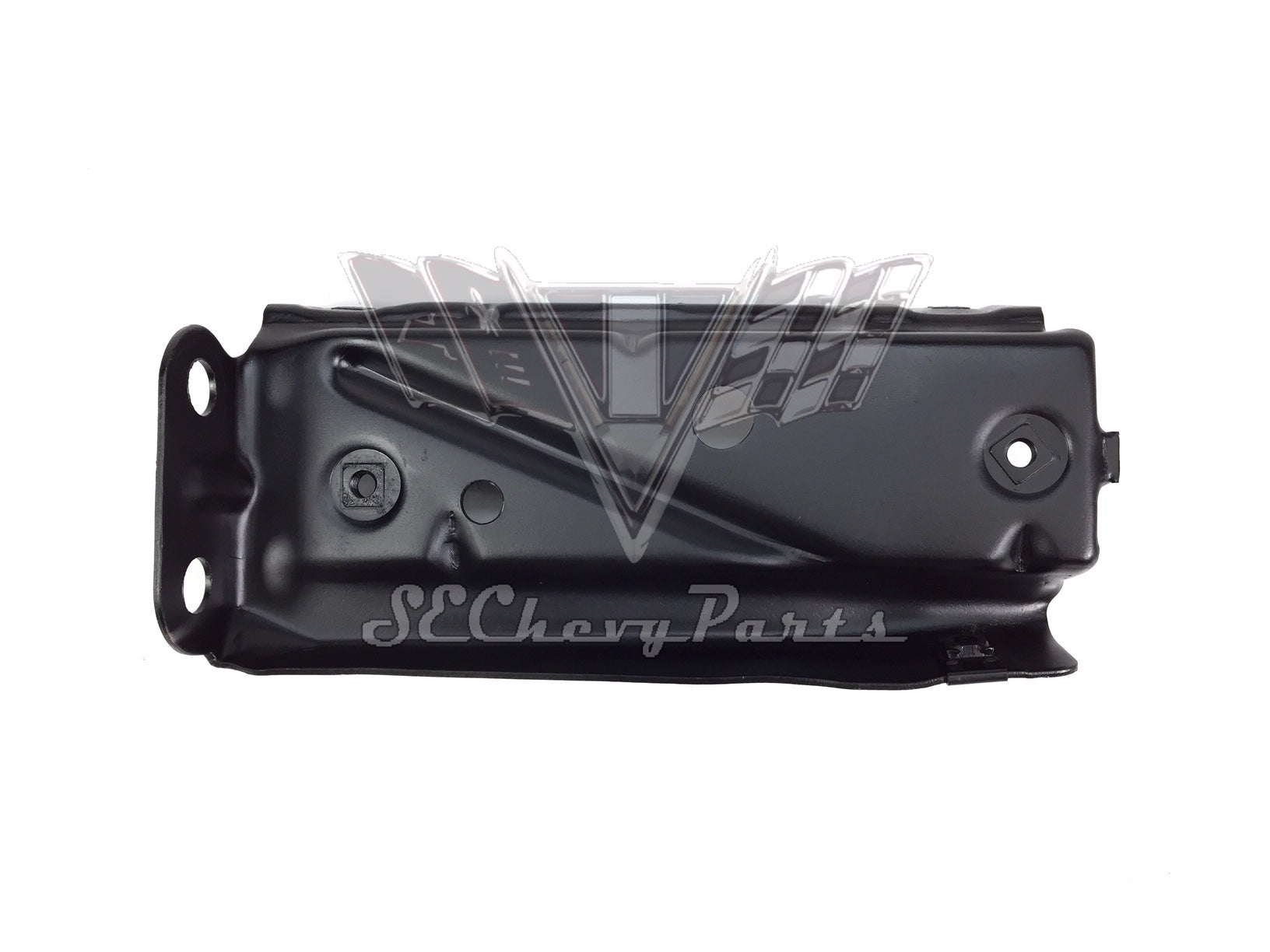 This 1963 Chevy Impala LEFT/DRIVER'S SIDE Hood Hinge Support Bracket is an original GM part that has been restored.  The bracket mounts to the inner fender and hood hinge.