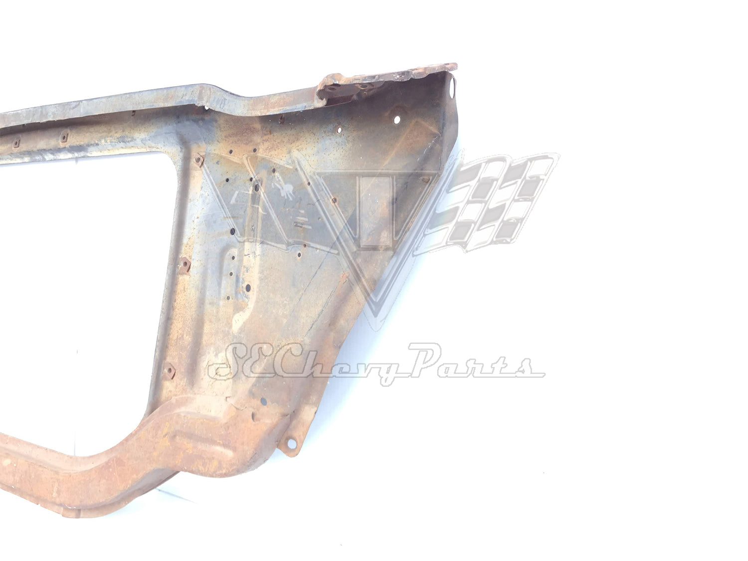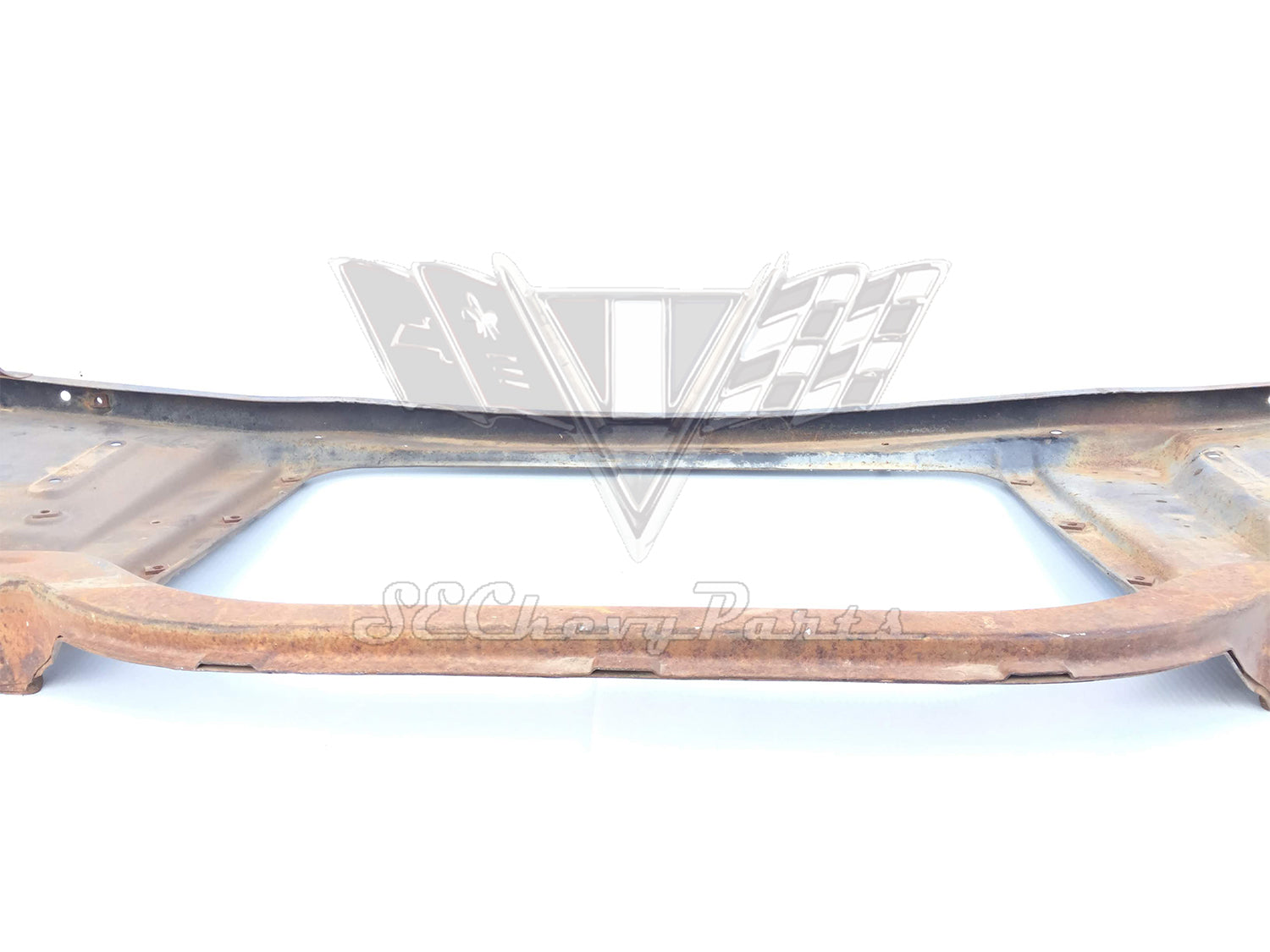 This 1963 Chevy Impala Radiator Core Support is an original GM part that is used. These are rust free and in great condition. The bottoms show little to know signs of deterioration. The part in the photo is just an example. Your core support may not look exactly like the photograph but the quality will be comparable.