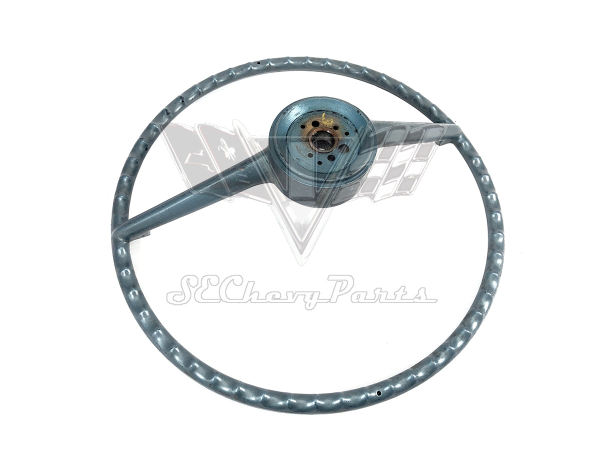 This 1964 Chevy Bel Air Steering Wheel is an original used GM part. The steering wheel will need restoring as it has cracks but it does NOT have any chunks missing.