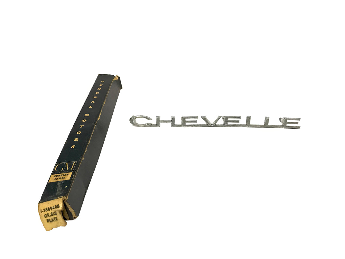 This 1964 Chevy Chevelle Fender Emblem is an original GM part. It fits the 1964 Chevelle 2D/4D Sedan and Station Wagon and the 2D HardTop. This is NOS 3849498. Sold AS IS. May show signs of shelf wear.