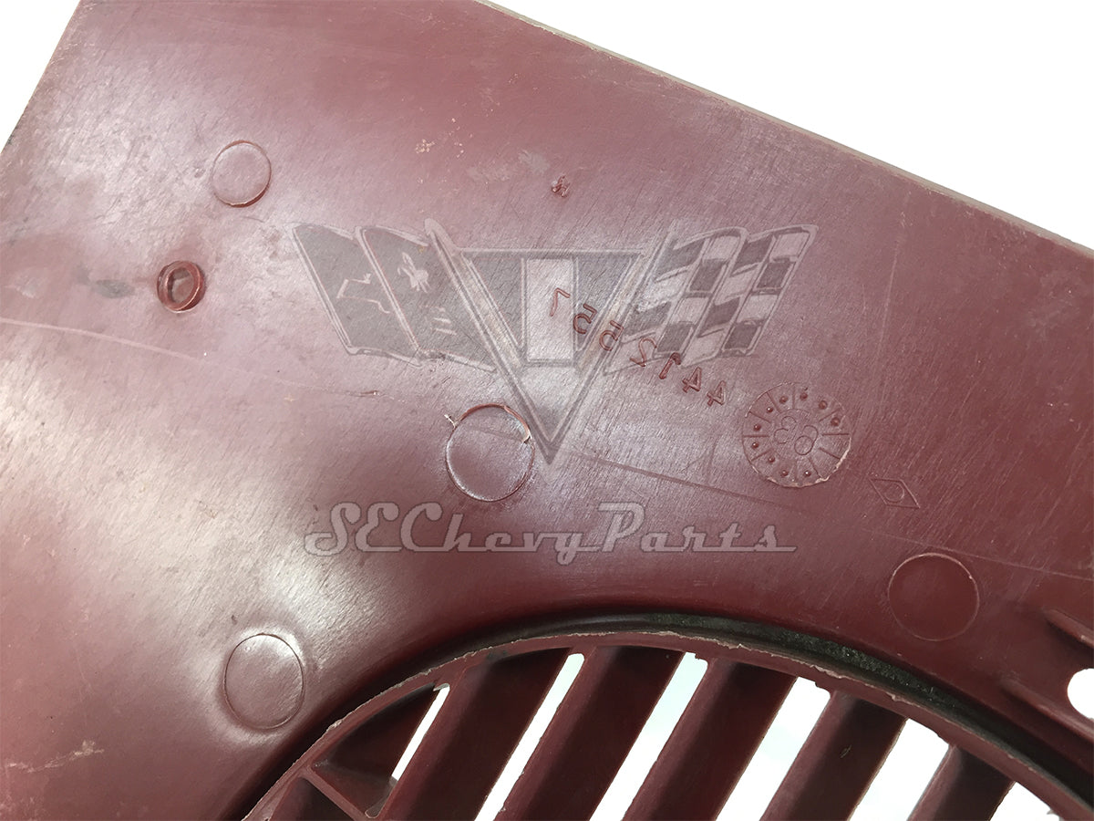 This 1964 Chevy Impala Kick Panel non-AC is an original used GM part #4412559. The plastic is good with no noticeable cracks or holes.