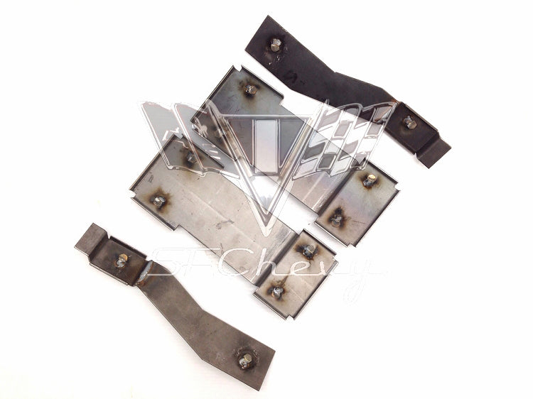 This 1965-1966 Chevrolet Impala Super Sport bucket seat floor mounting brackets are a reproduction set of four pieces.  The brackets must be welded to the floor pan and are necessary for installing an original set of bucket seats.
