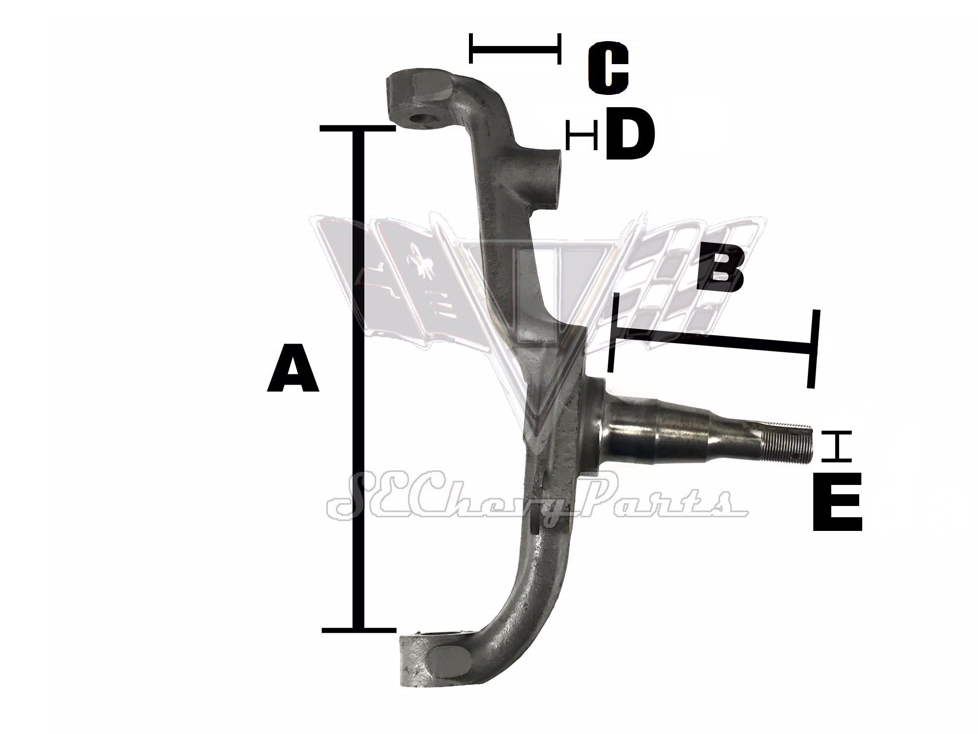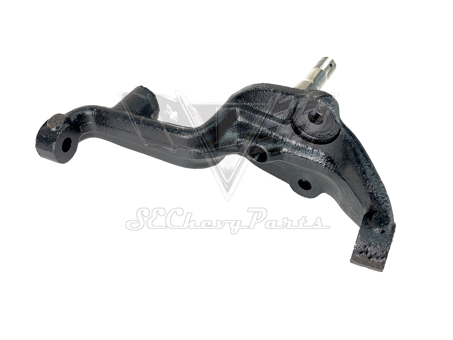 This is an original 1965-1968 Chevrolet restored standard spindle.  The spindle attaches to the upper and lower A-arms and bolts to the rear of the break drum.  These can also be used for a front break conversion.  Note that the spindle does not come with a washer or nut.  We have most all years available please call for price.