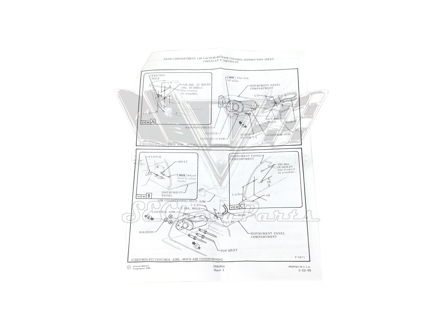 This 1965-1969 Chevy Impala Automatic Vacuum Trunk Opener is a reproduction of the original part #3945954. This fits all non-wagon full-size Chevys.