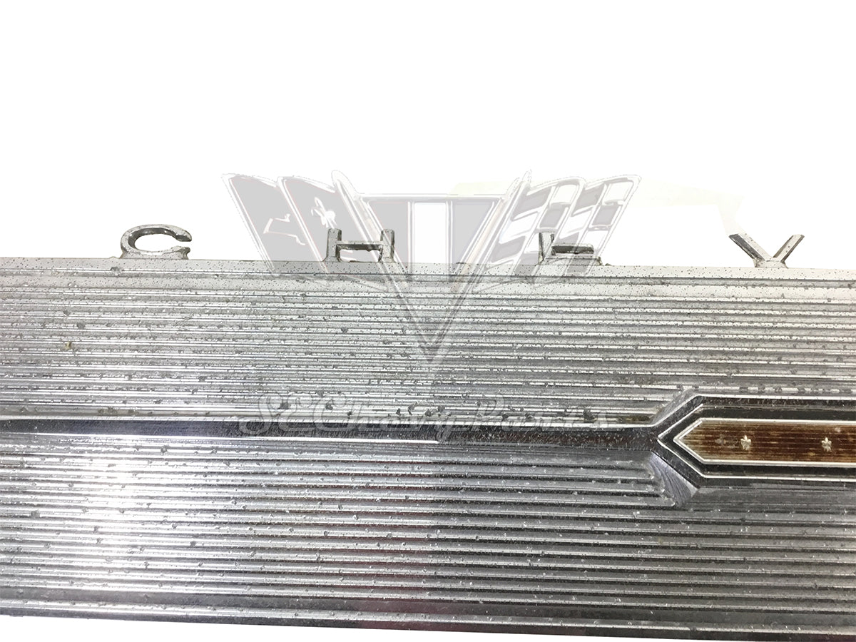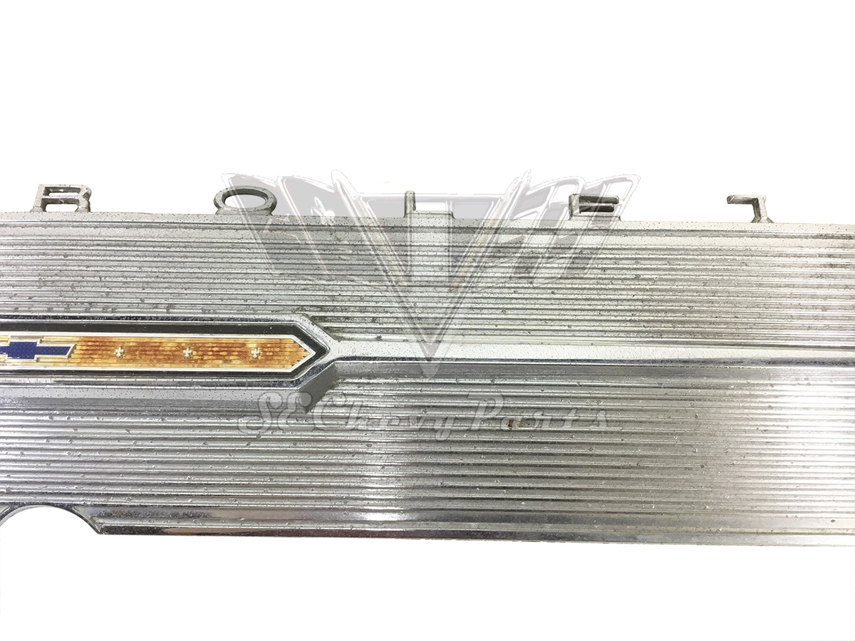 This 1965 Chevy II Nova SS Trunk Panel Trim Plate Emblem is an original used GM part #4474870. The "E" and "T" are broken (see images). There is pitting but overall in decent shape.