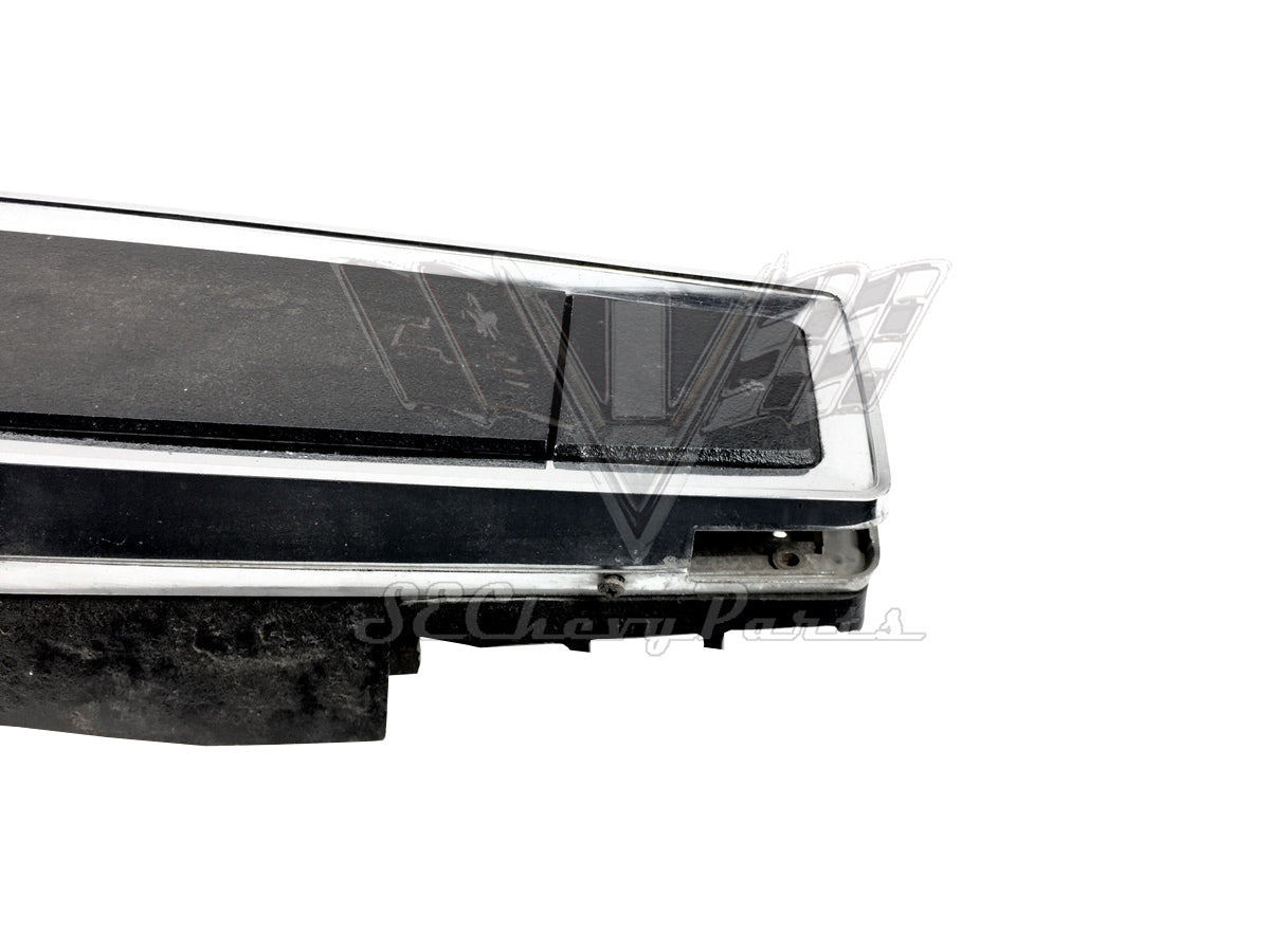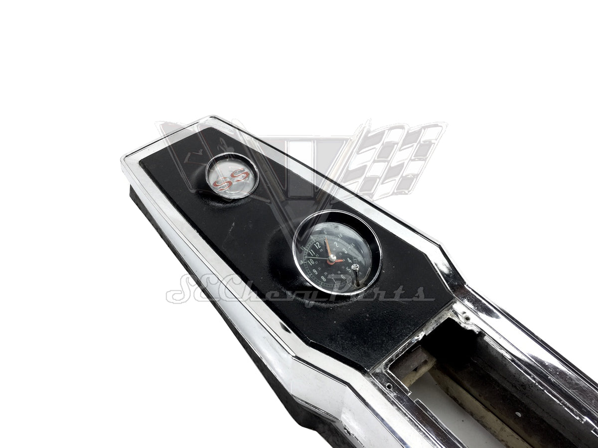 This 1965 Chevy Impala Super Sport Automatic Center Console is an original used GM part. The chrome is in really good condition, however the plastic does have some chips in it as seen in the photos.