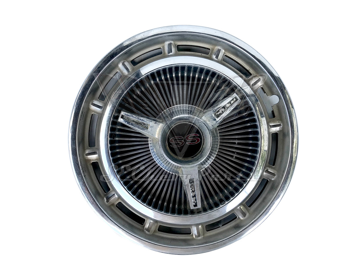 This 1965 Chevy Impala Super Sport SS 14" Hubcaps Set is an original GM part. These are a used set so they will have some dings and dents in the hubcaps. They are not show quality but could easily be restored