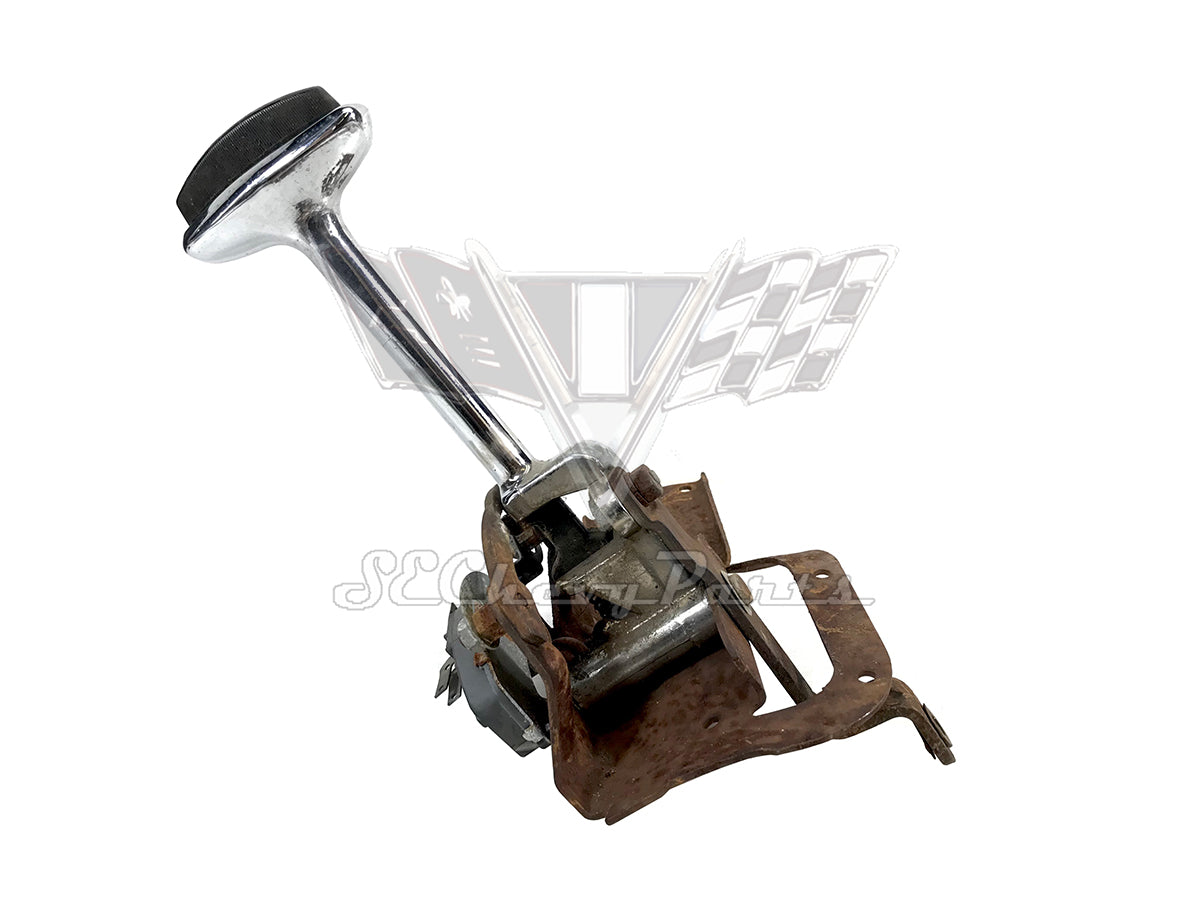 This 1966-1967 Chevy Impala Super Sport Automatic Console Shifter is an original used GM part. Comes with a used neutral safety switch. The chrome handle is in decent shape and the shifter functions smoothly.