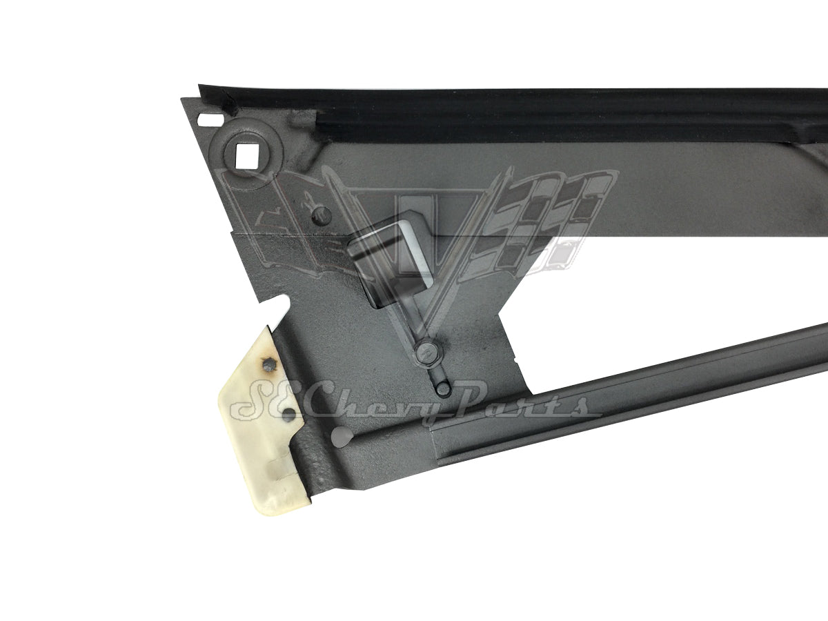 This 1966 Chevy Impala 2-Door Hardtop Door Glass Channel is an original GM part that has been media blasted and primed. Includes the front and rear stops but does NOT include the rubber window gasket or glass. The nylon guard may have some cracks but is usable.